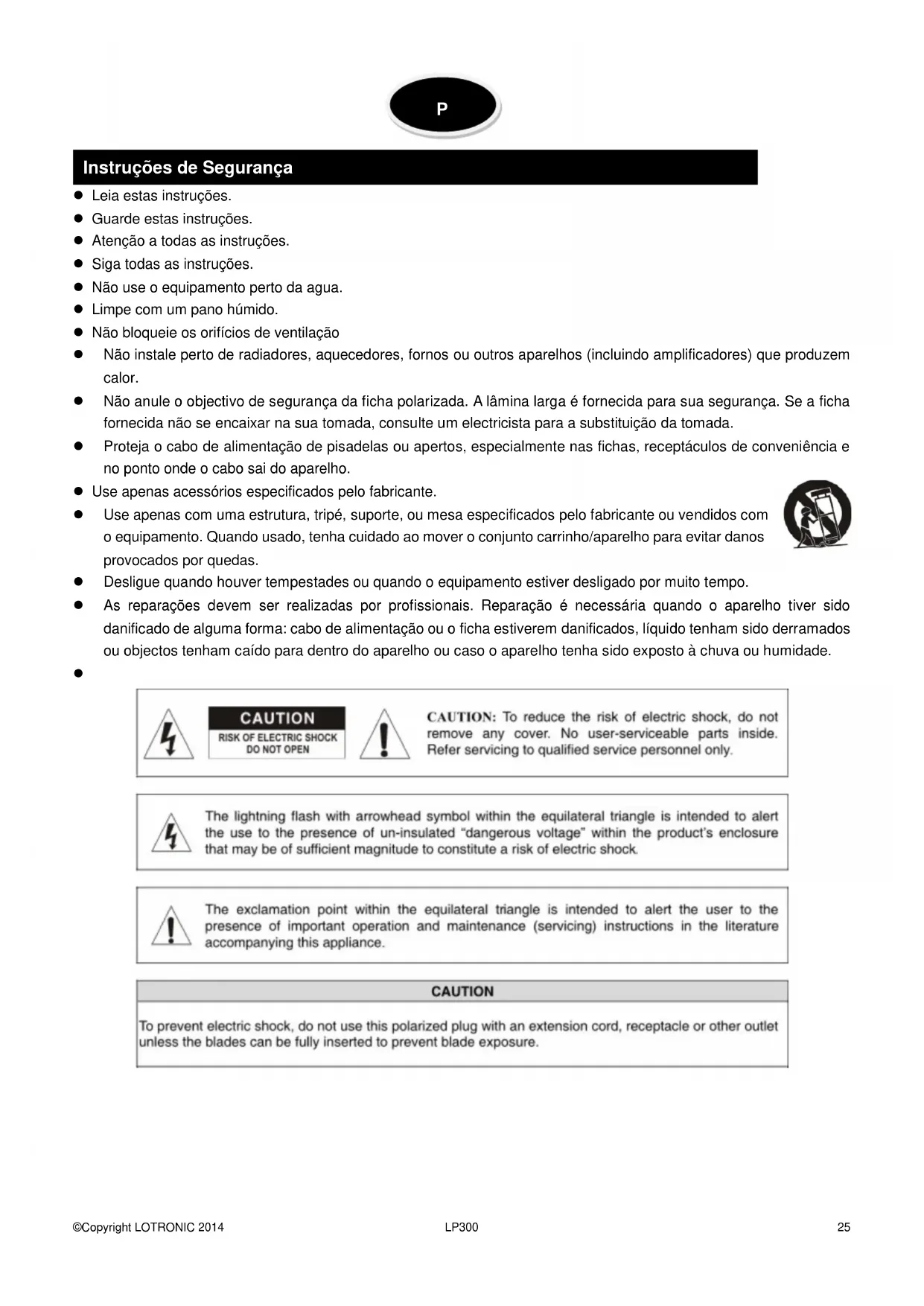 Instruções de Segurança P©Copyright LOTRONIC 2014 LP300 26