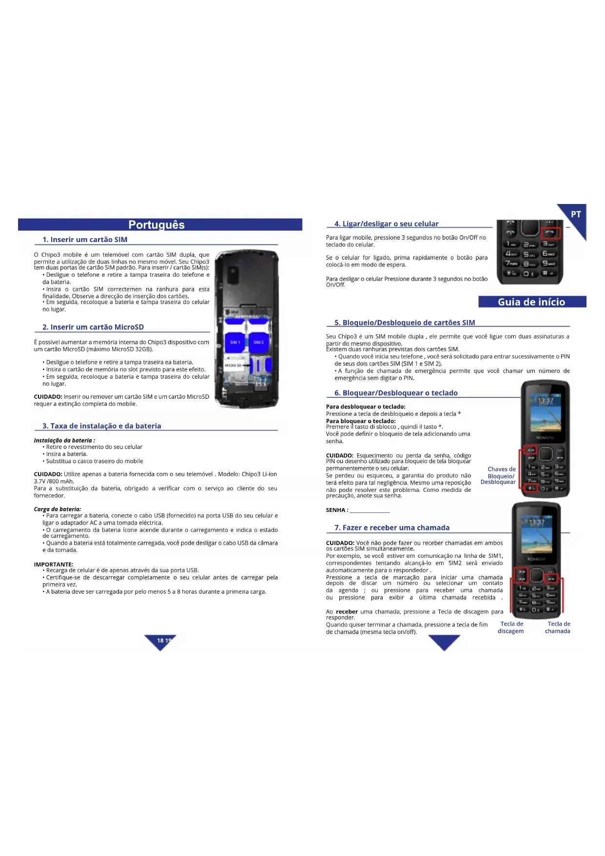O Chipo3 mobile é um telemóvel com cartão SIM dupla, que permite a utilização de duas linhas no mesmo móvel. Seu Chipo3 tem duas portas de cartão SIM padrão. Para inserir / cartão SIM(s):