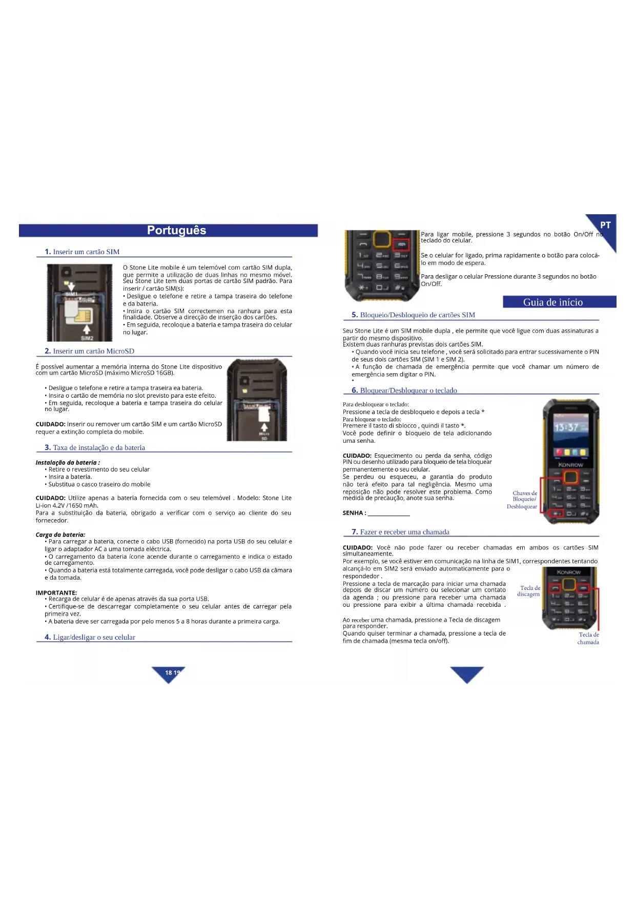Guia de início Chaves de Bloqueio/ Desbloquear Tecla de discagem Tecla de chamada PortuguêsPT