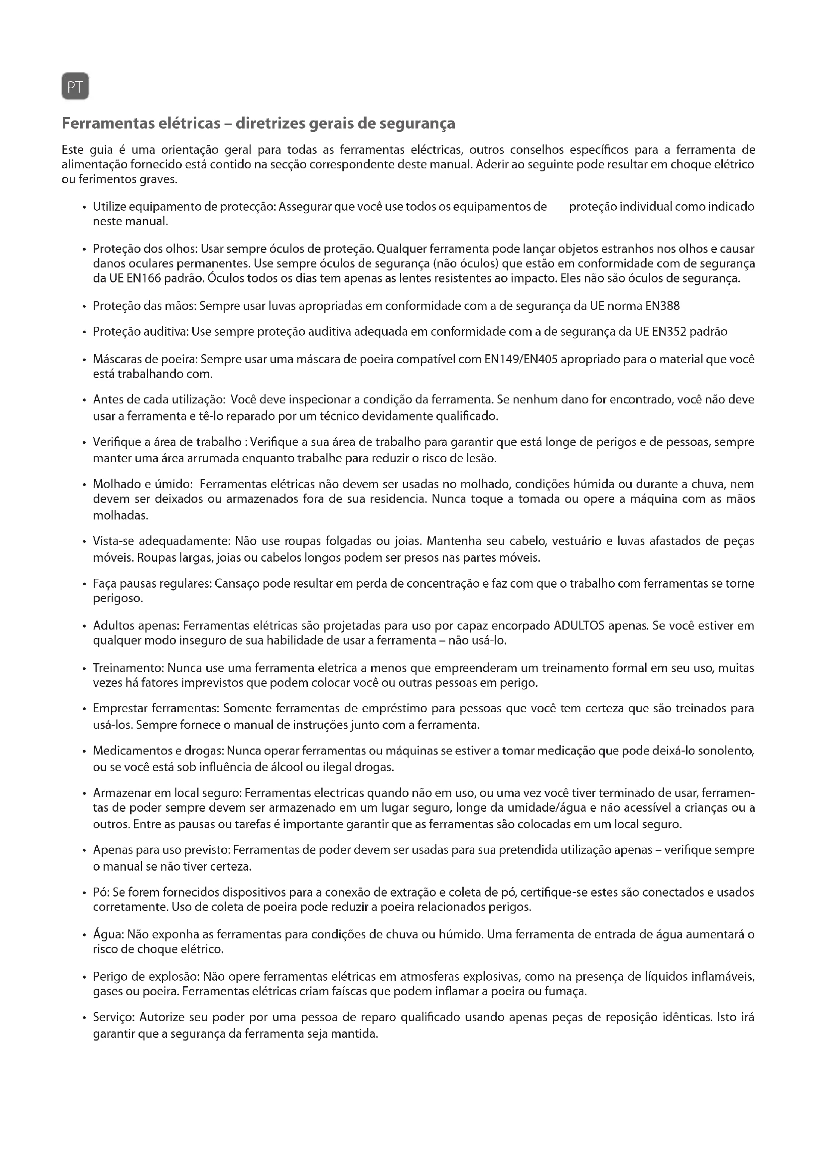 - Apenas para uso previsto: Ferramentas de poder devem ser usadas para sua pretendida utilização apenas – verifique sempre o manual se não tiver certeza.
