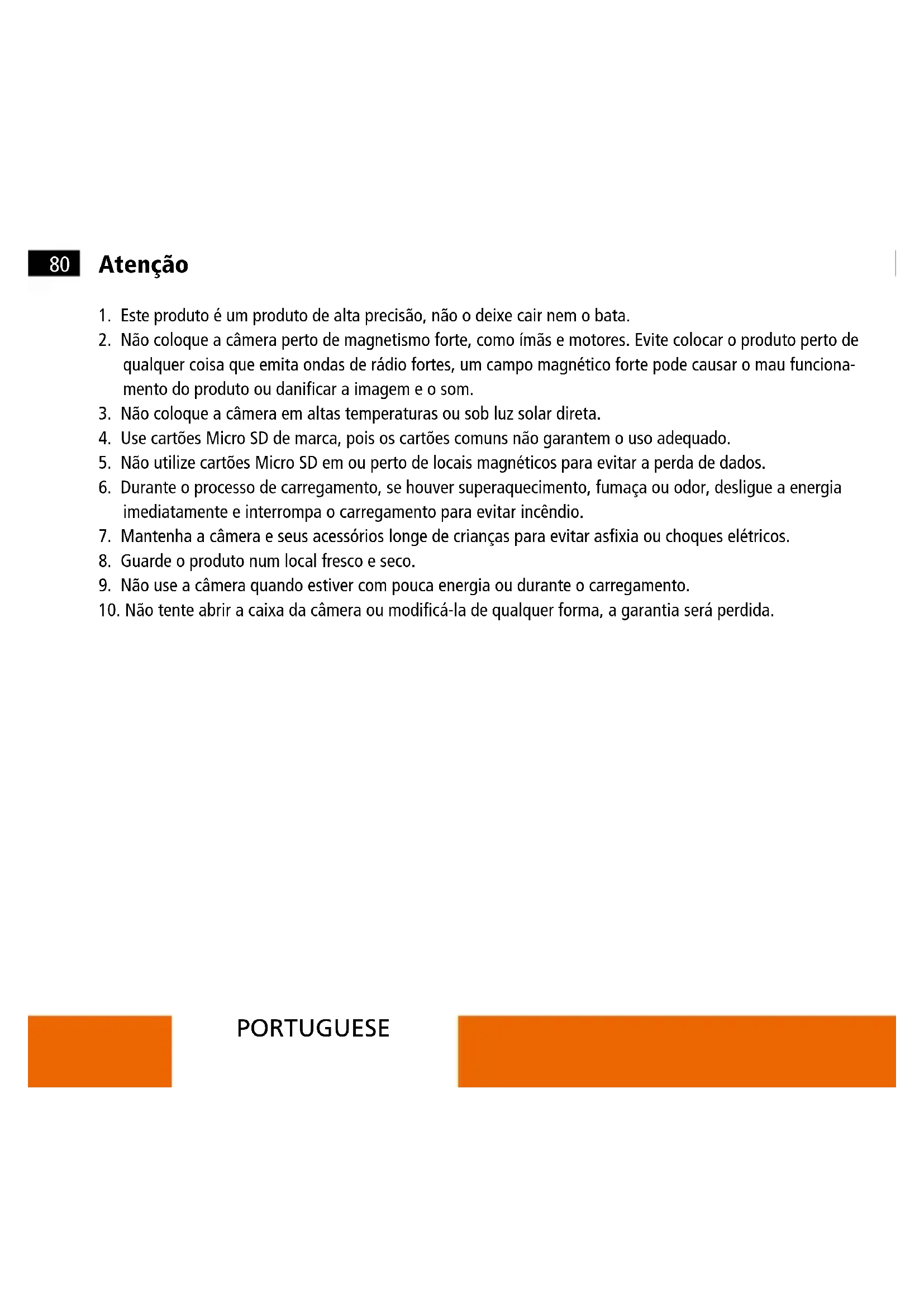 10. Não tente abrir a caixa da câmera ou modificá-la de qualquer forma, a garantia será perdida.81
