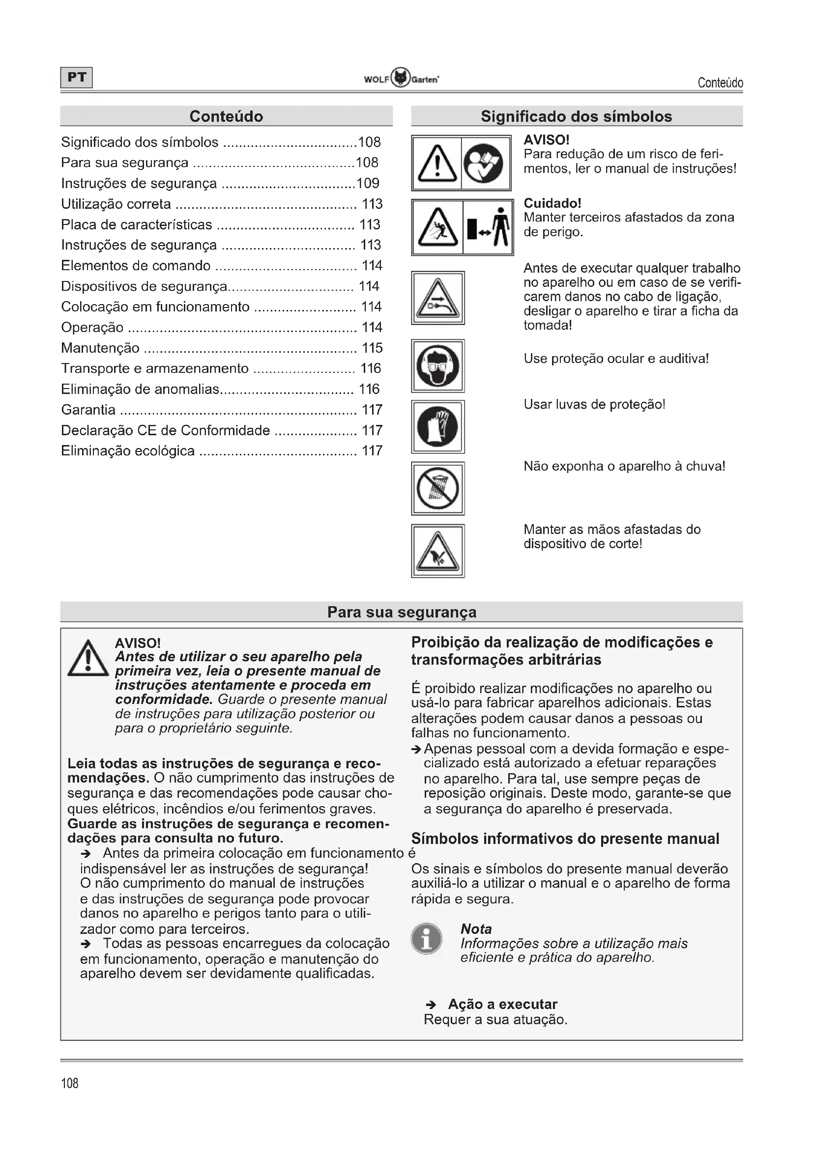 - Instruções de segurança p. 113
