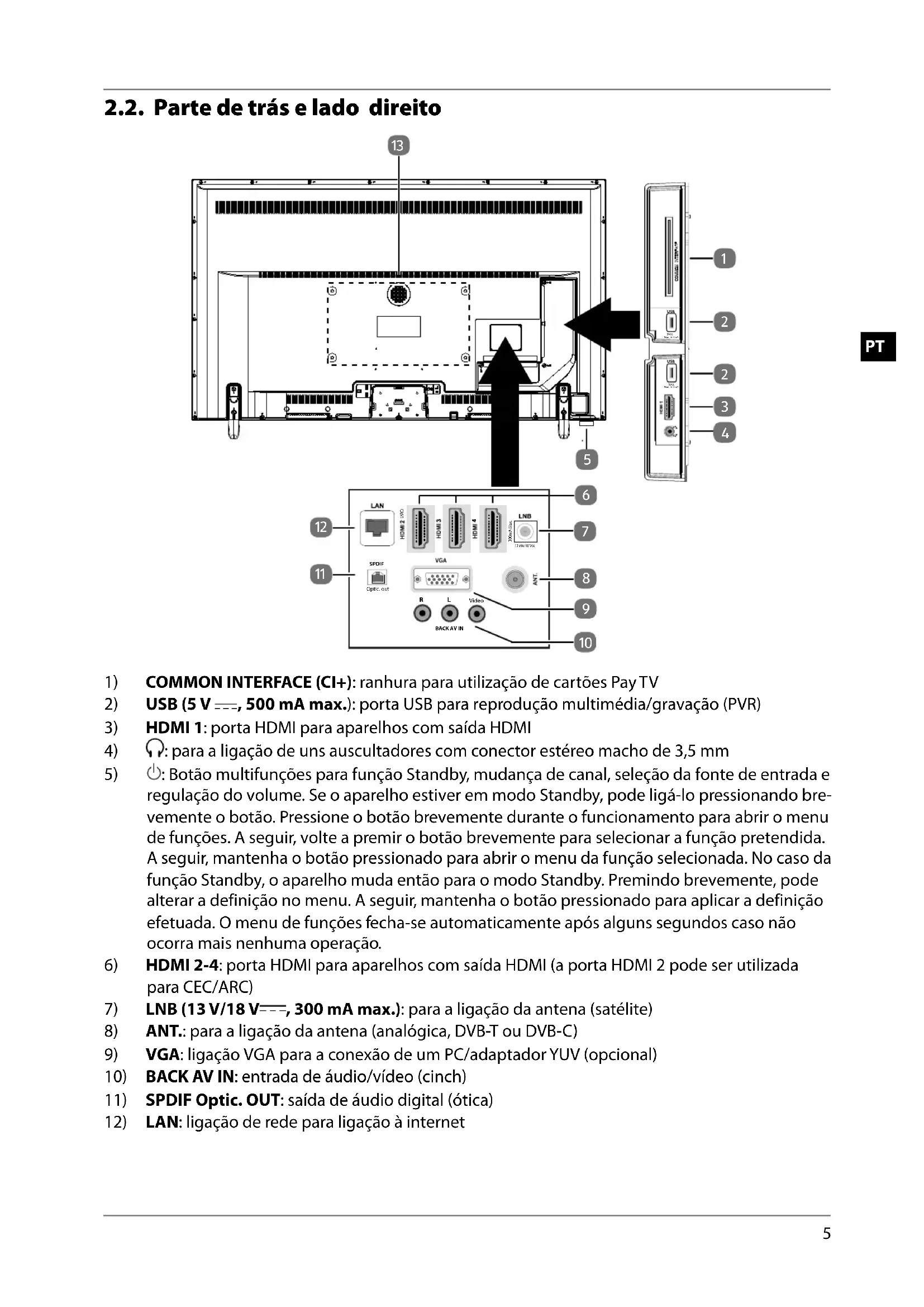1) COMMON INTERFACE (CI+): ranhura para utilização de cartões Pay TV