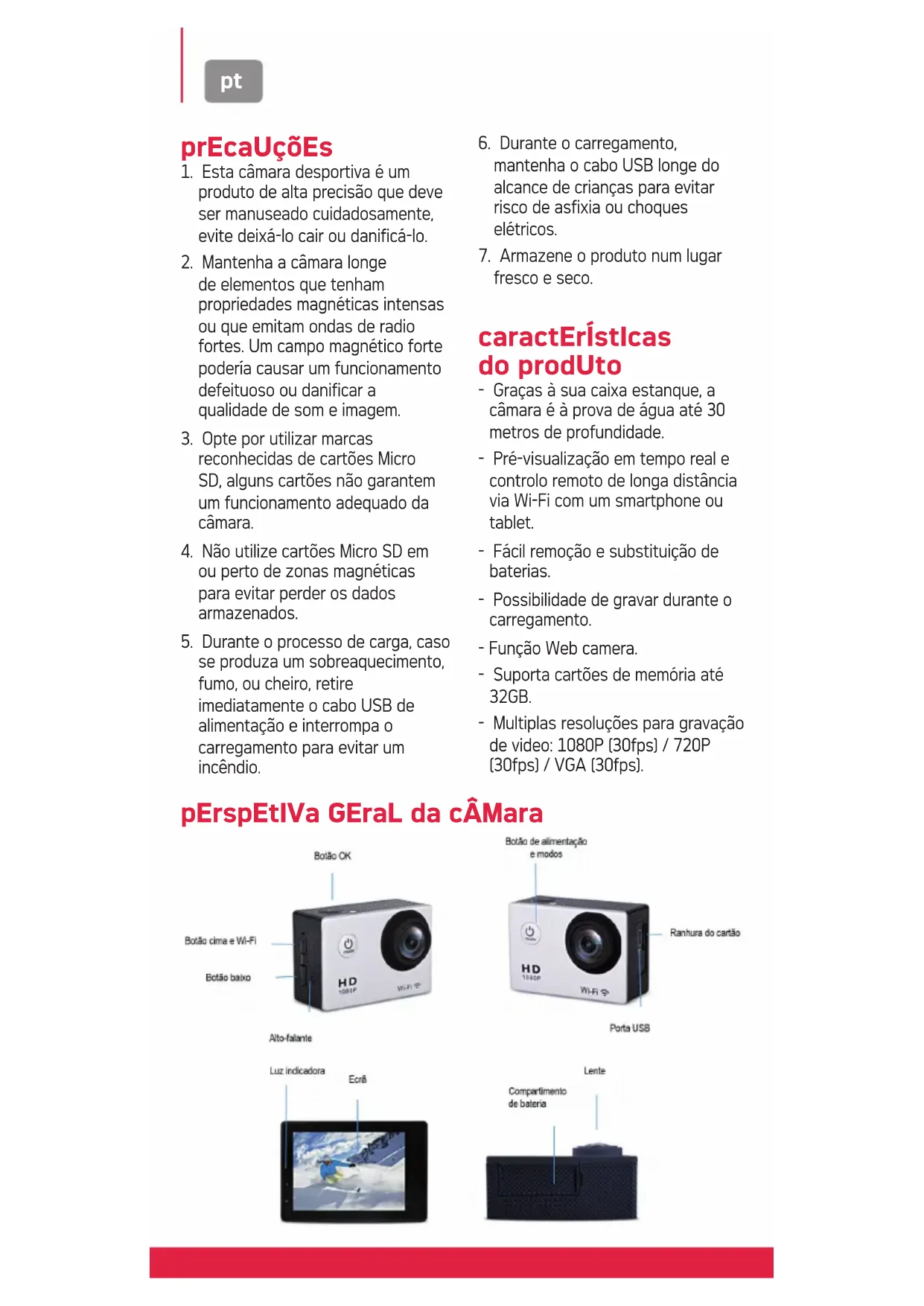 1.Esta camarada desportiva é um produit de alta precisão que deve ser manuseado cuidadosamente, evite deixá-lo cair ou danificá-lo.