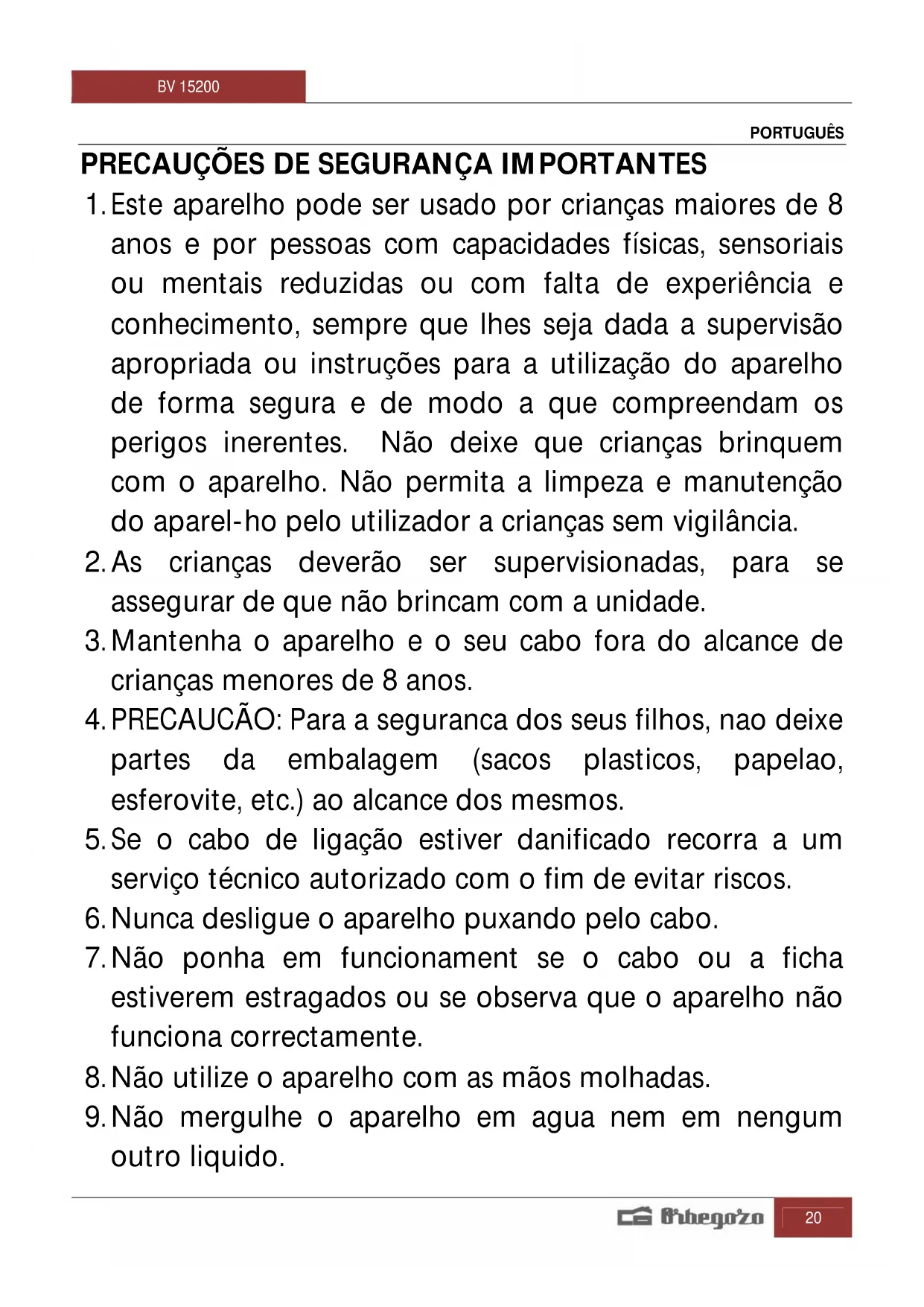 MANUAL DE UTILIZADOR BV 15200 Orbegozo