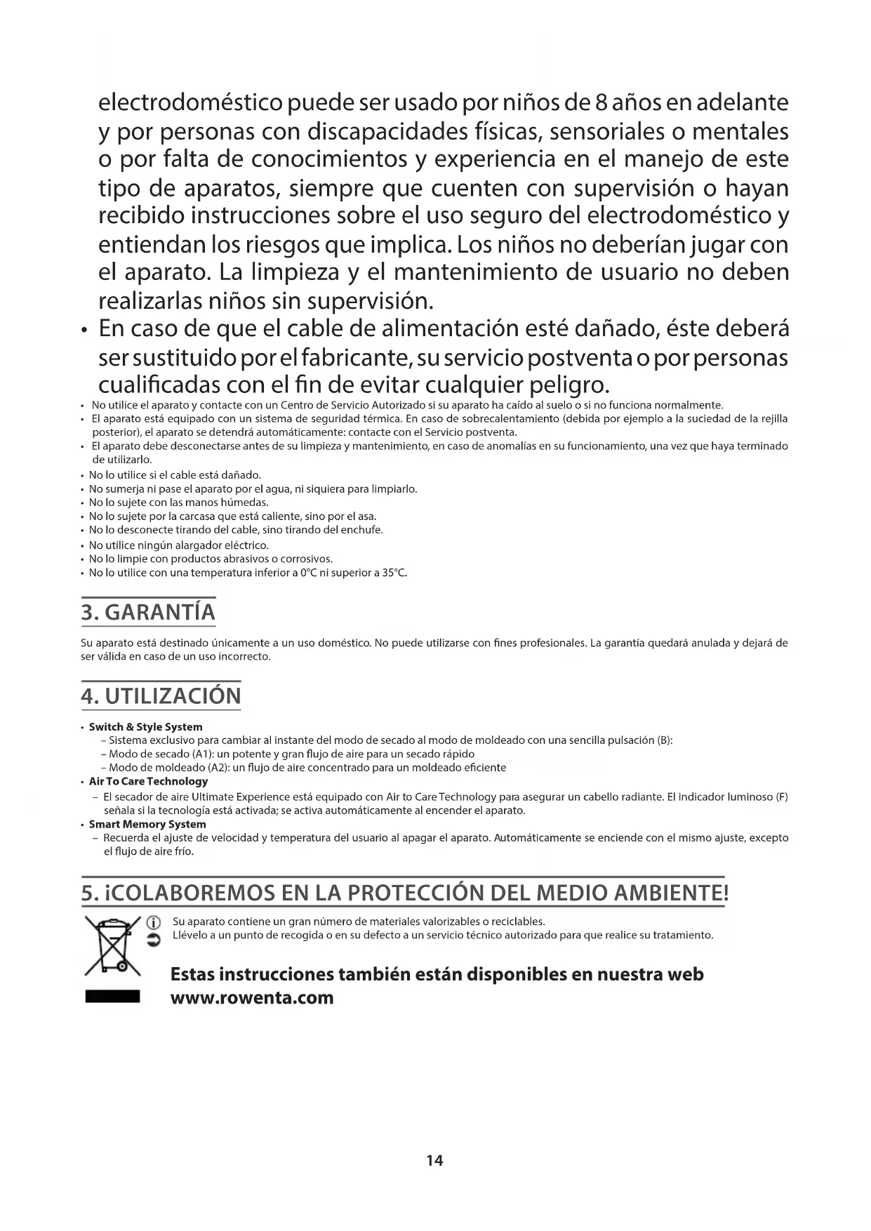 O seu aparelho contém materiais que podem ser recuperados ou reciclados. Entregue-o num ponto de recolha para possibilitar o seu tratamento. Estas instruções também estão disponíveis no nosso website www.rowenta.pt.