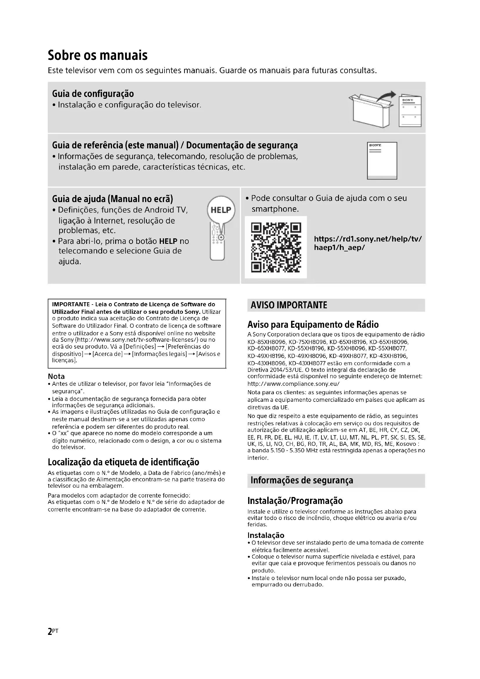Baixe as instruções para o seu Televisor em formato PDF gratuitamente! Encontre o seu manual KD65XH8096BAEP - SONY e retome o controlo do seu dispositivo eletrónico. Nesta página estão publicados todos os documentos necessários para a utilização do seu dispositivo. KD65XH8096BAEP da marca SONY.