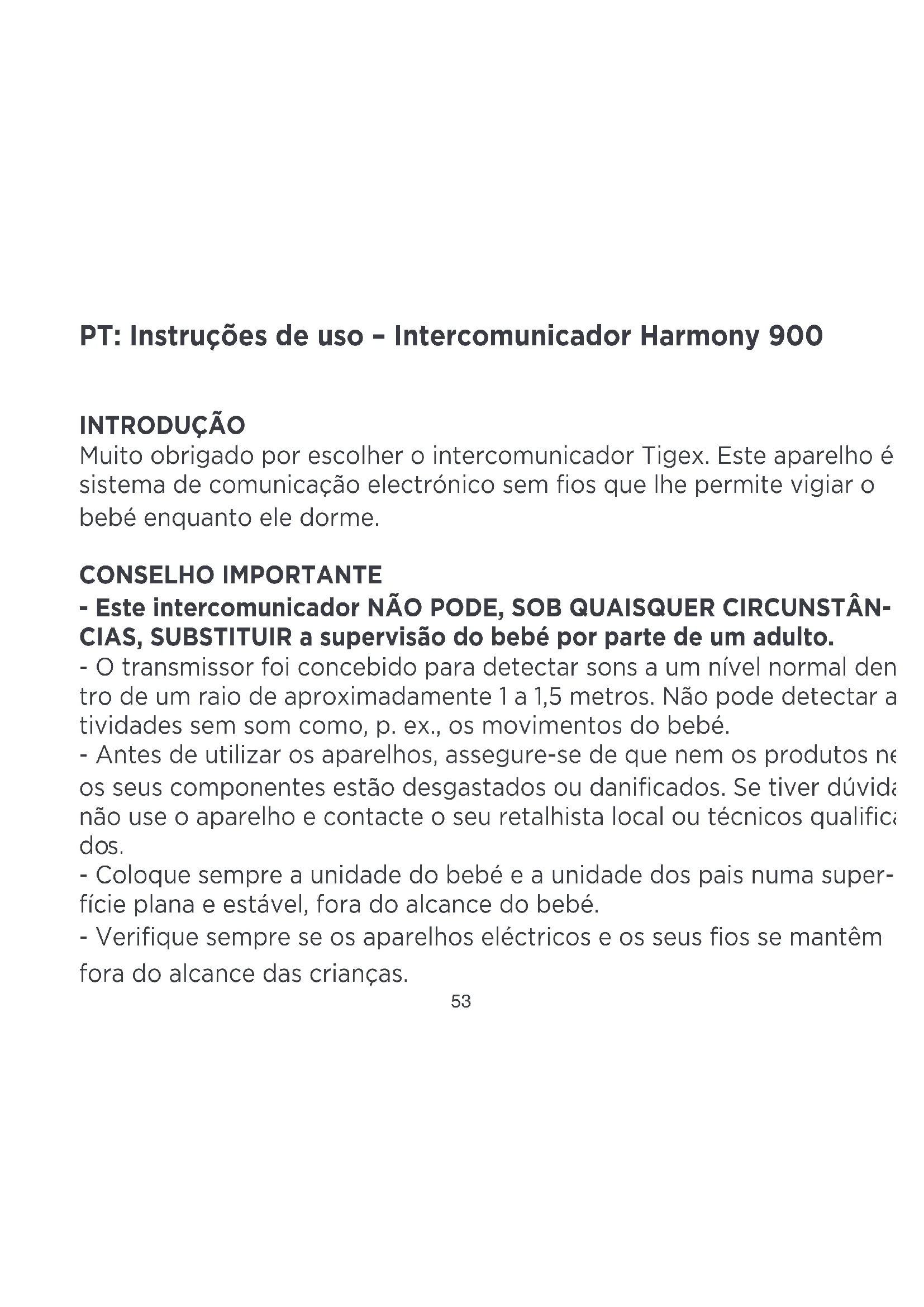 - Este intercomunicador NÃO PODE, SOB QUALISQUER CIRCUNSTÂNCIAS, SUBSTITUIR a supervisão do bebé por parte de umadulto.