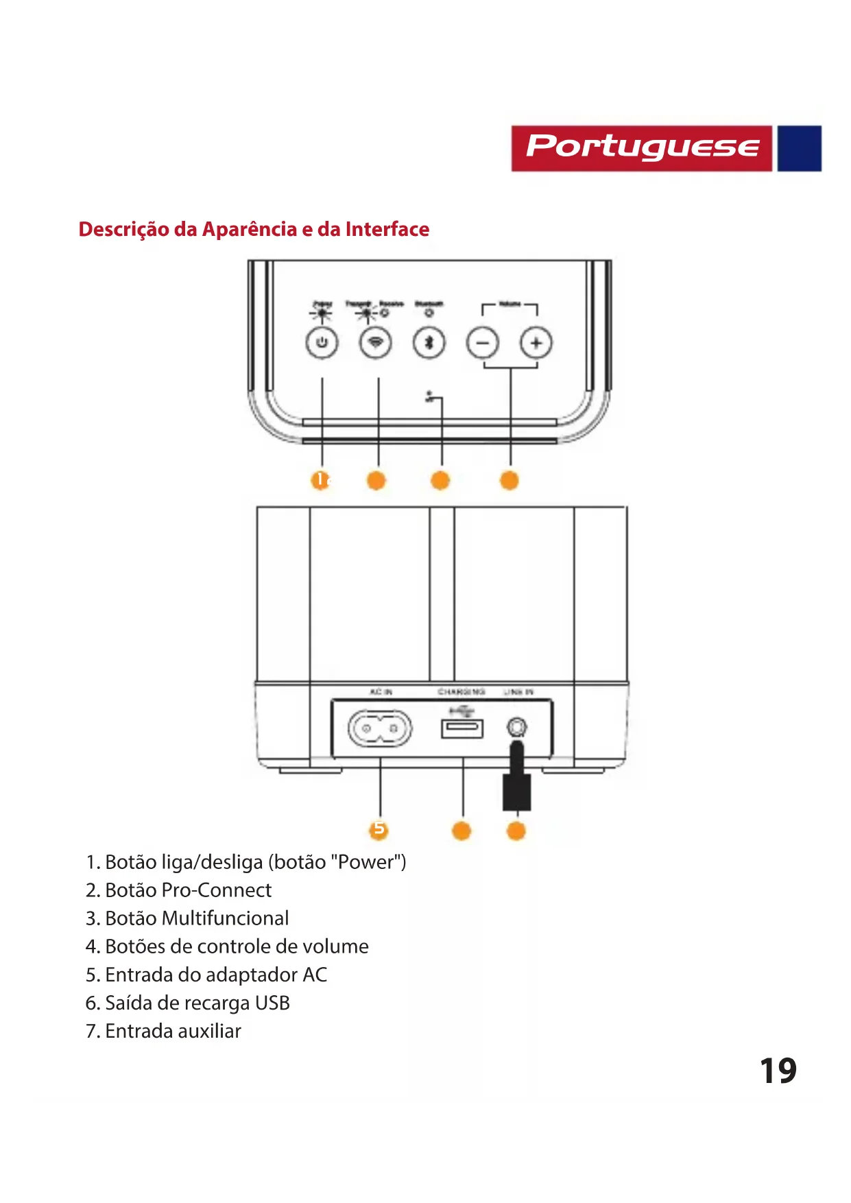 - Para entrar manualmente no modo de emparelhamento por Bluetooth, pressione e mantenha pressionado o " Botão Multifuncional" durante cerca de 2 segundos.
