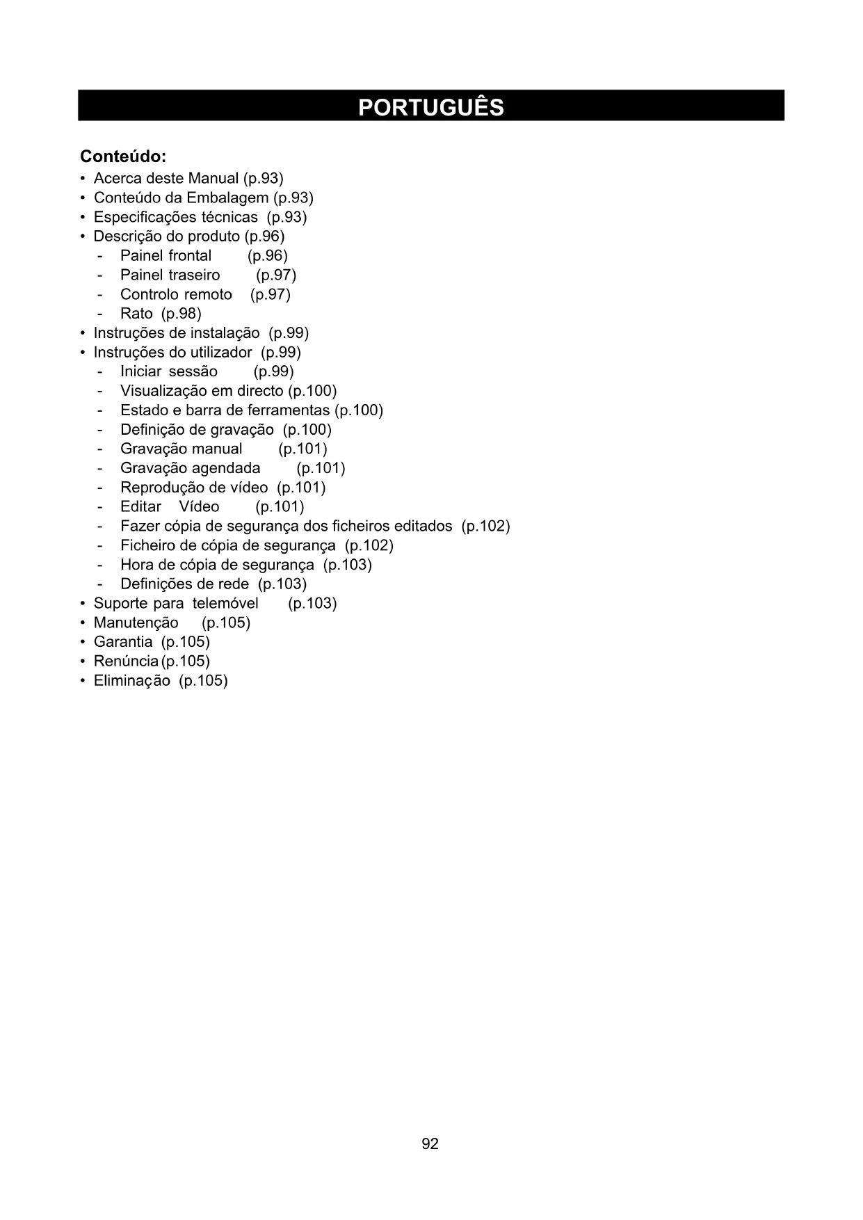 - Conteúdo da Embalagem (p.93)