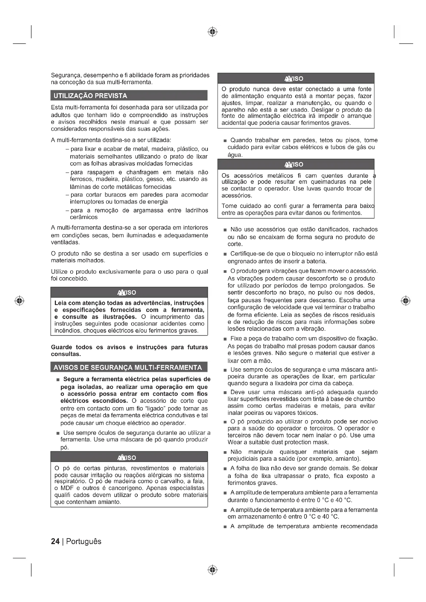 AVISOS DE SEGURANÇA MULTI-FERRAMENTA