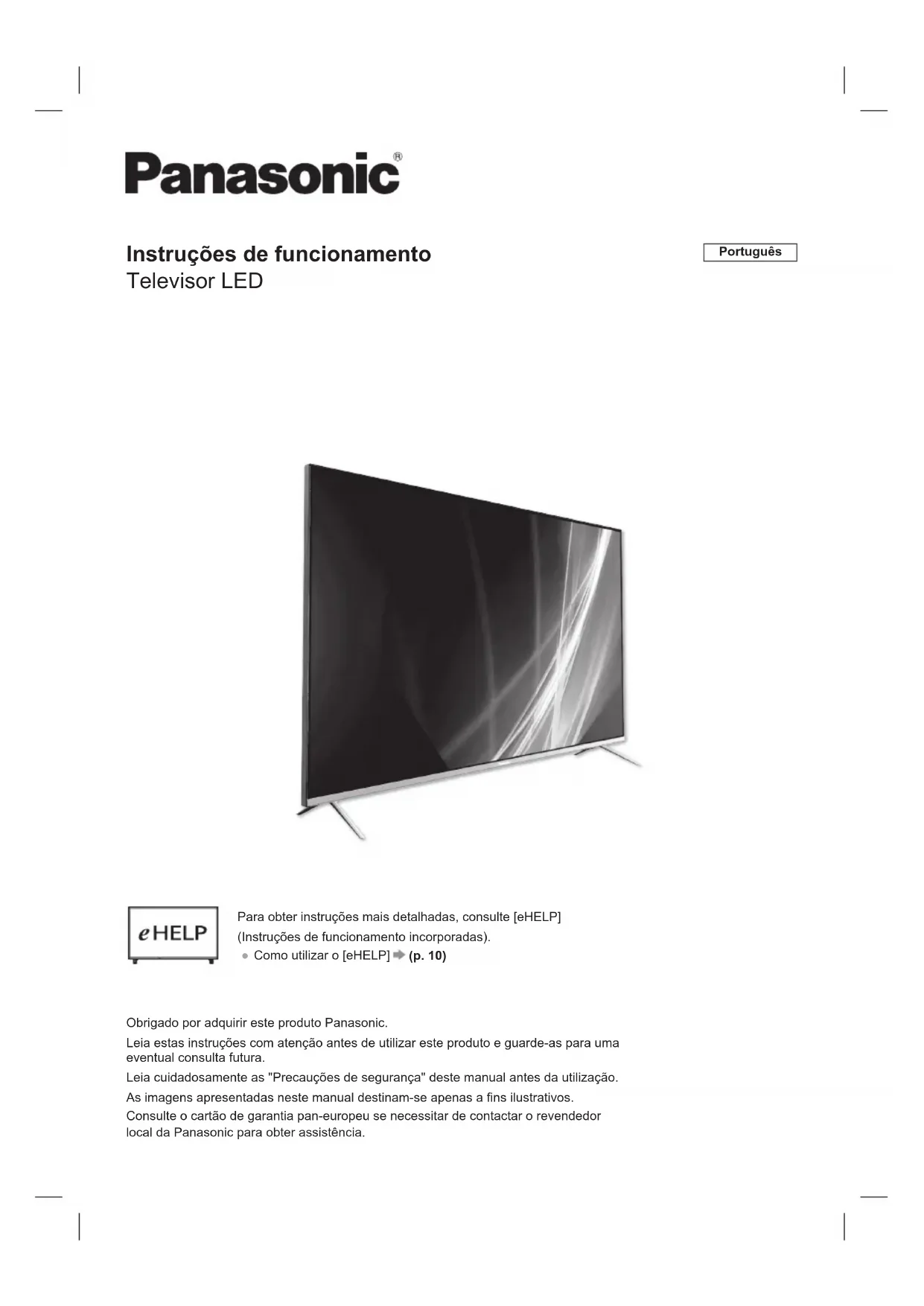 Para obter informações sobre o software de código aberto, consulte (Início > Definições > Preferências do dispositivo > Sobre > Informações legais) Para obter mais informações sobre o produto, visite ETREL: https://eprel.ec.europa.eu. O número de registo EPREL está disponível em https://eprel.panasonic.eu/product.Registo do cliente O número do modelo e o número de série deste produto estão disponíveis no painel traseiro. Deve anotar este número de série no espaço fornecido abaixo e guardar este livro, bem como o recibo de compra, como um registo permanente da sua compra para ajudar na identificação em caso de roubo ou perda, e para fins de serviço de garantia. Número do modelo Número de série Panasonic Marketing Europe GmbH Hagenauer Strasse 43, D-65203 Wiesbaden, Alemanha Website: http://www.panasonic.com Português Eliminação de pilhas e equipamentos antigos Apenas para a União Europeia e países com sistemas de reciclagem Estes símbolos nos produtos, embalagens e/ou documentos de acompanhamento significam que os produtos eléctricos e electrónicos utilizados e as pilhas não devem ser misturados com os resíduos domésticos gerais. Para um tratamento, recuperação e reciclagem adequados de produtos antigos e pilhas usadas, leve-os aos pontos de recolha adequados, de acordo com a legislação nacional. Ao desfazer-se deles correctamente, irá ajudar a poupar recursos valiosos e a evitar quaisquer potenciais efeitos negativos na saúde humana e no ambiente. Para obter mais informações sobre a recolha e reciclagem, contacte o seu município local. Podem aplicar-se sanções à eliminação incorrecta destes resíduos, em conformidade com a legislação nacional. Nota relativa ao símbolo das pilhas (símbolo inferior): Este símbolo pode ser utilizado em combinação com um símbolo de químicos. Neste caso, está em conformidade com os requisitos estabelecidos pela directiva para o produto químico em causa.Οδηγίες λειτουργίας Τηλεόραση LED