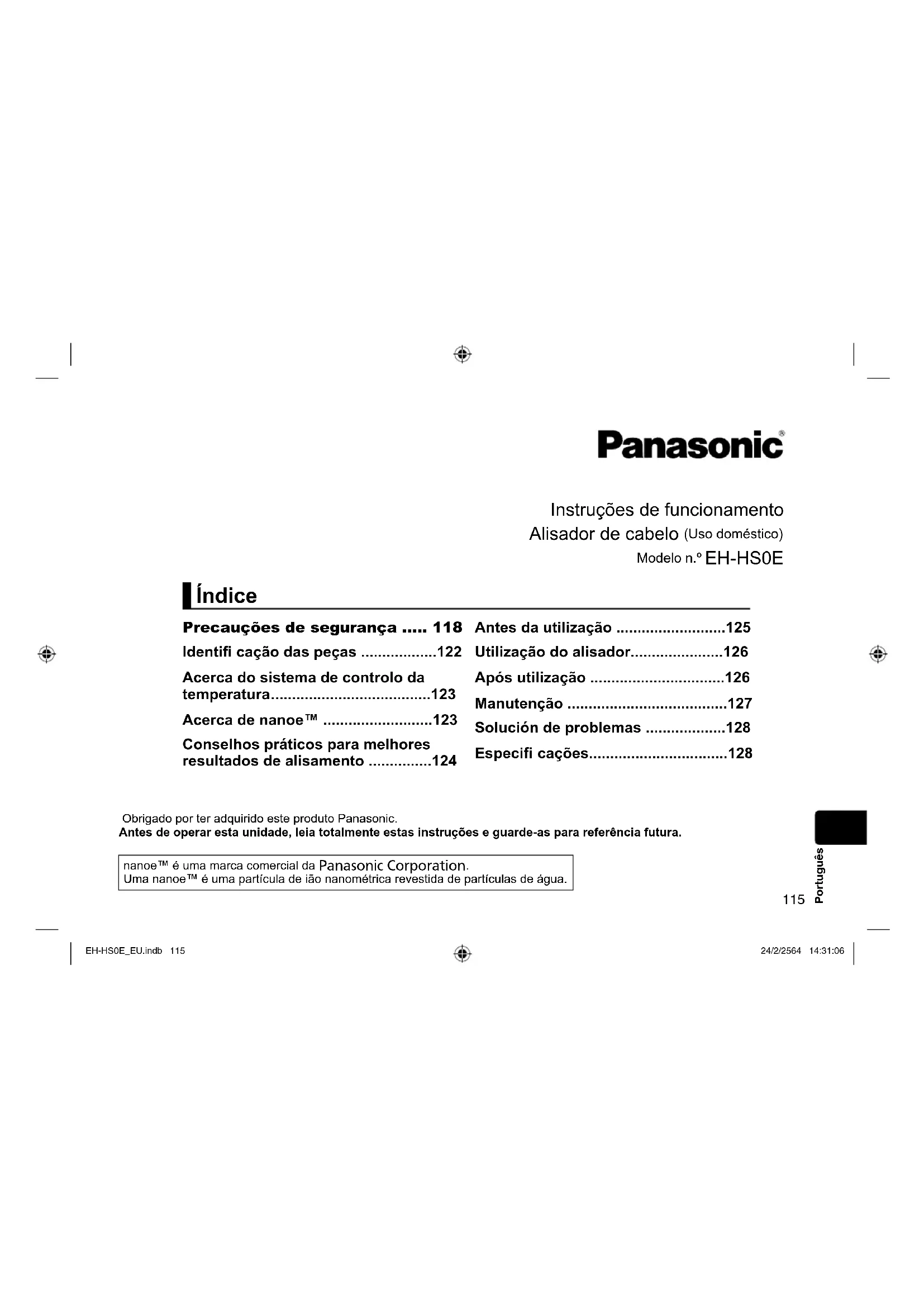 Encontre gratuitamente o manual do aparelho EHHS0E PANASONIC em formato PDF.
