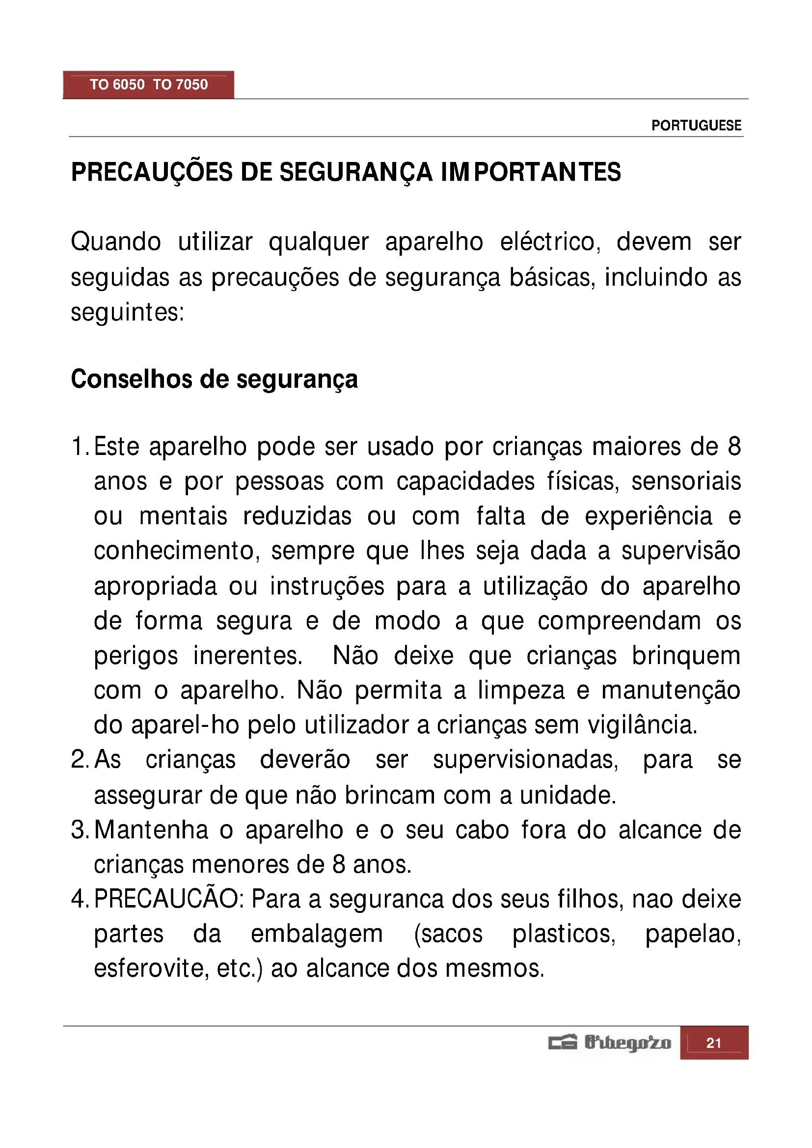 Encontre gratuitamente o manual do aparelho TO 6050 Orbegozo em formato PDF.