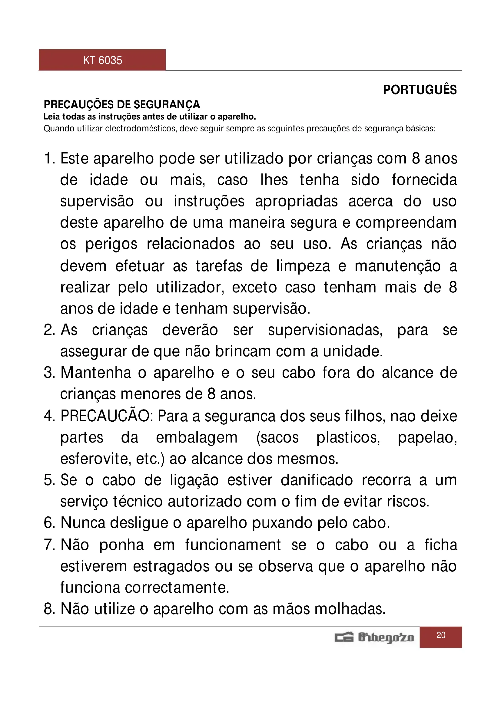 Encontre gratuitamente o manual do aparelho KT 6035 Orbegozo em formato PDF.