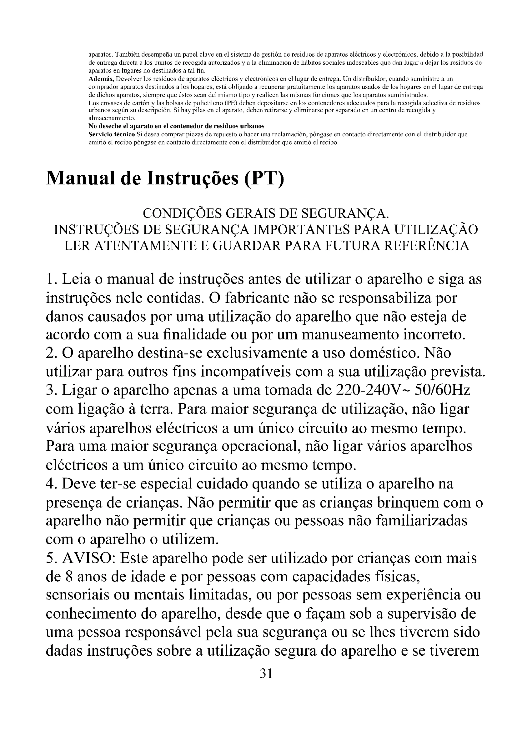 2. O aparelho destina-se exclusivamente a uso doméstico. Não