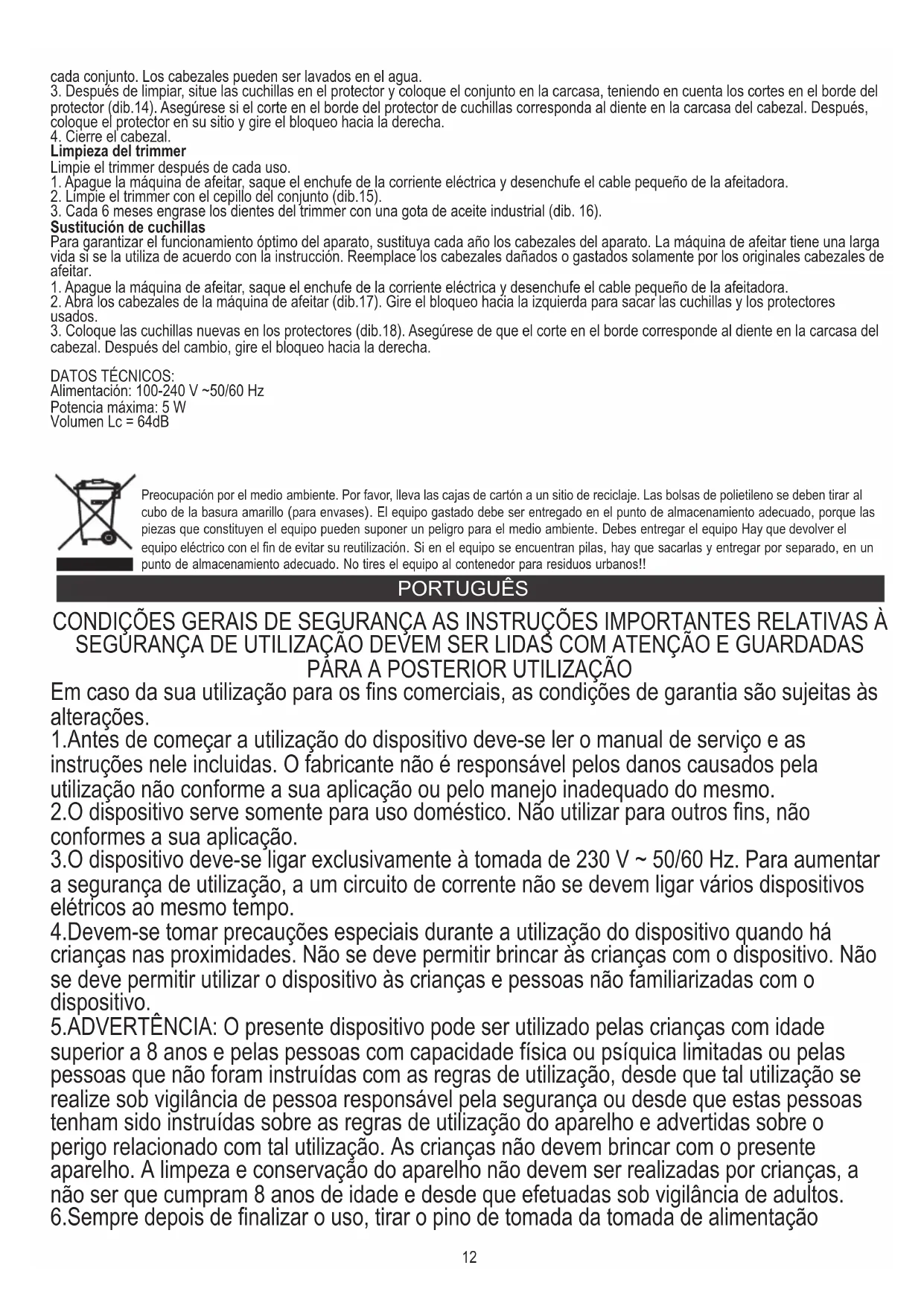 22. Unicamente pode lavar-se a cabeça do aparelho, o resto não se deve molhar na água.