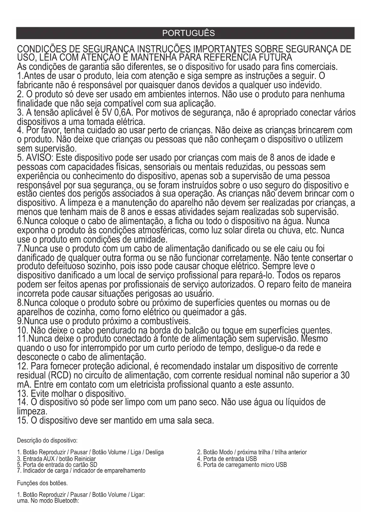 5. AVISO: Este dispositivo pode ser usado por crianças com mais de 8 anos de idade e