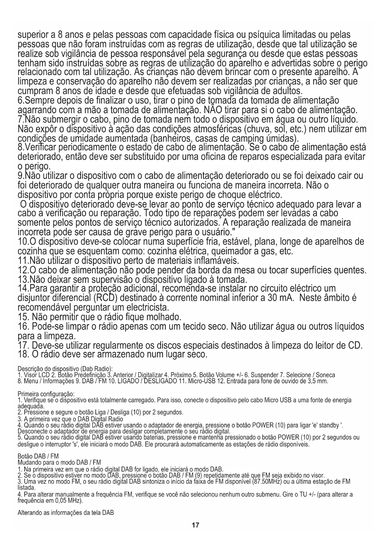 18. O rádio deve ser armazenado num lugar seco.