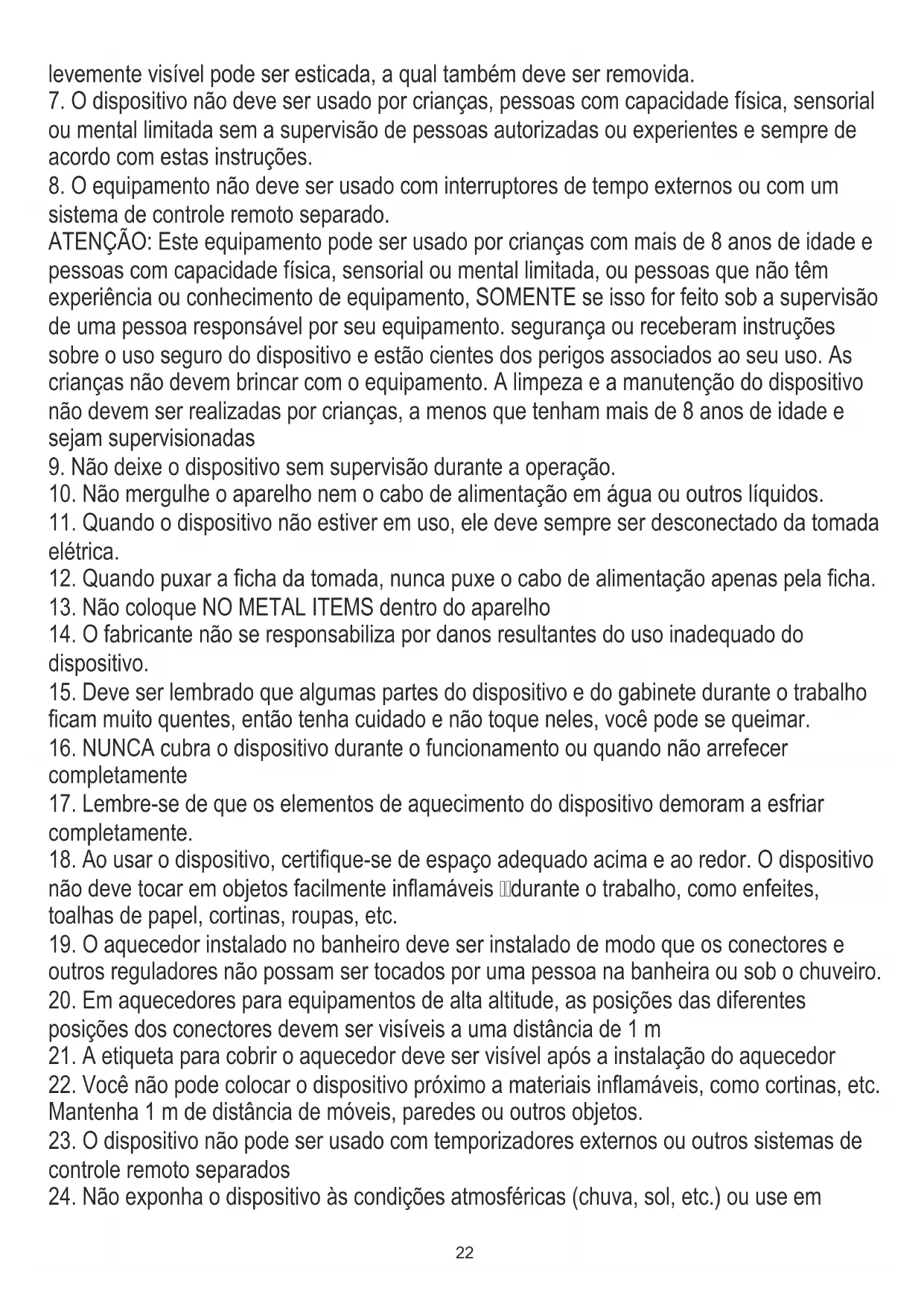 22. Você não pode colocar o dispositivo próximo a materiais inflamáveis, como cortinas, etc.
