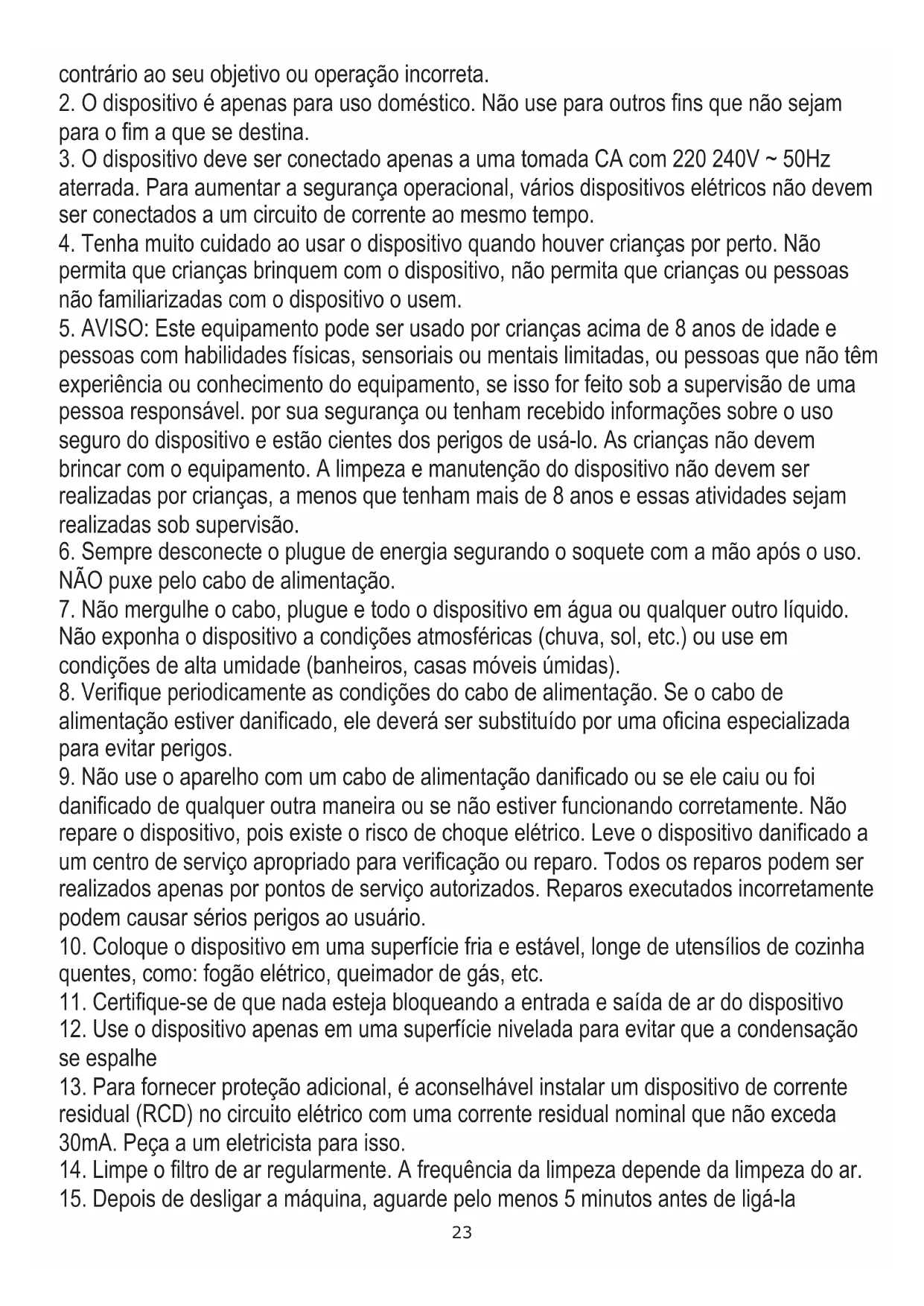 5. AVISO: Este equipamento pode ser usado por crianças acima de 8 anos de idade e