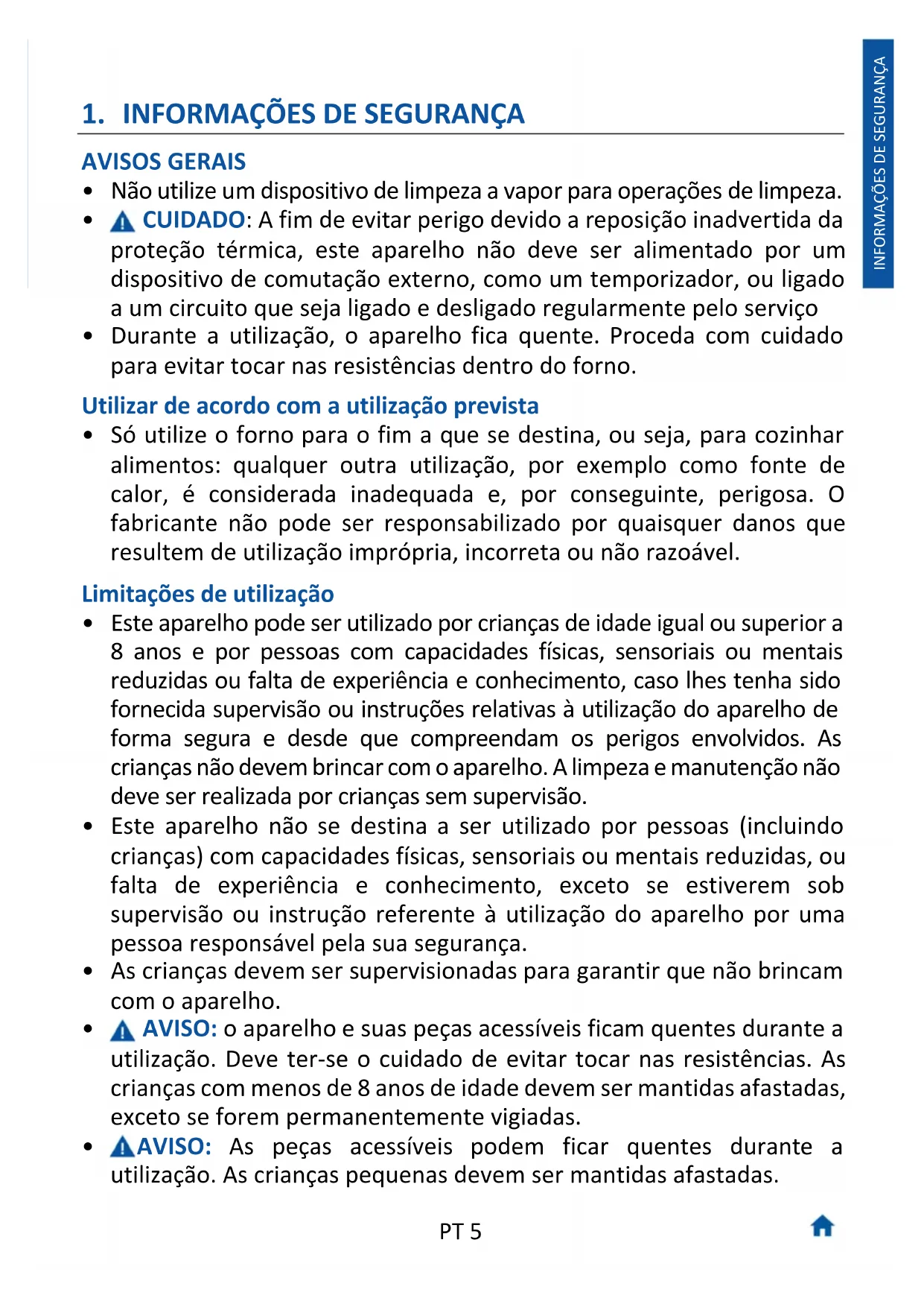 - AVISO: As peças acessíveis podem ficar quentes durante a utilização. As crianças pequenas devem ser mantidas afastadas.PT 6