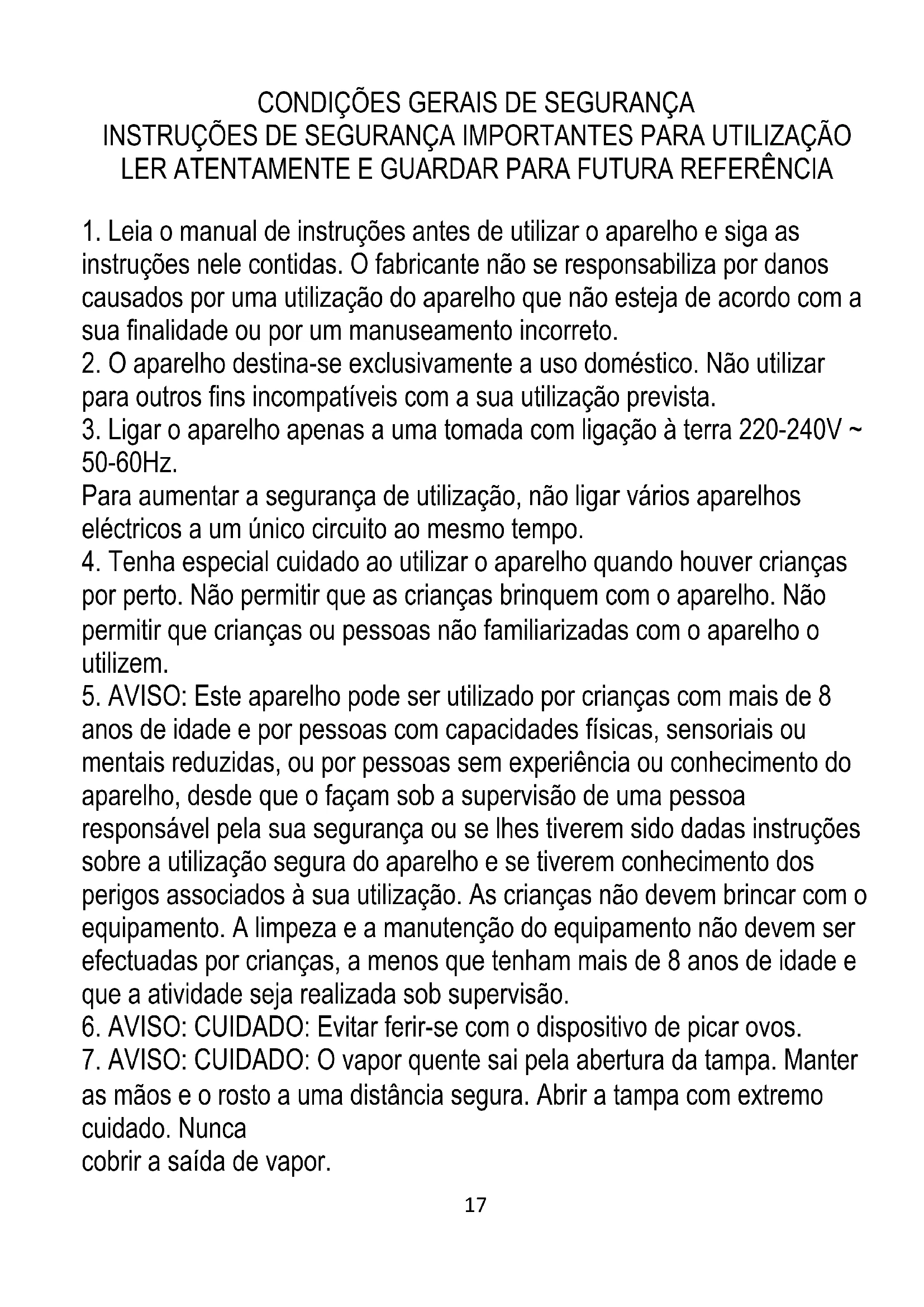 19. O produto destina-se exclusivamente à cozedura de ovos.