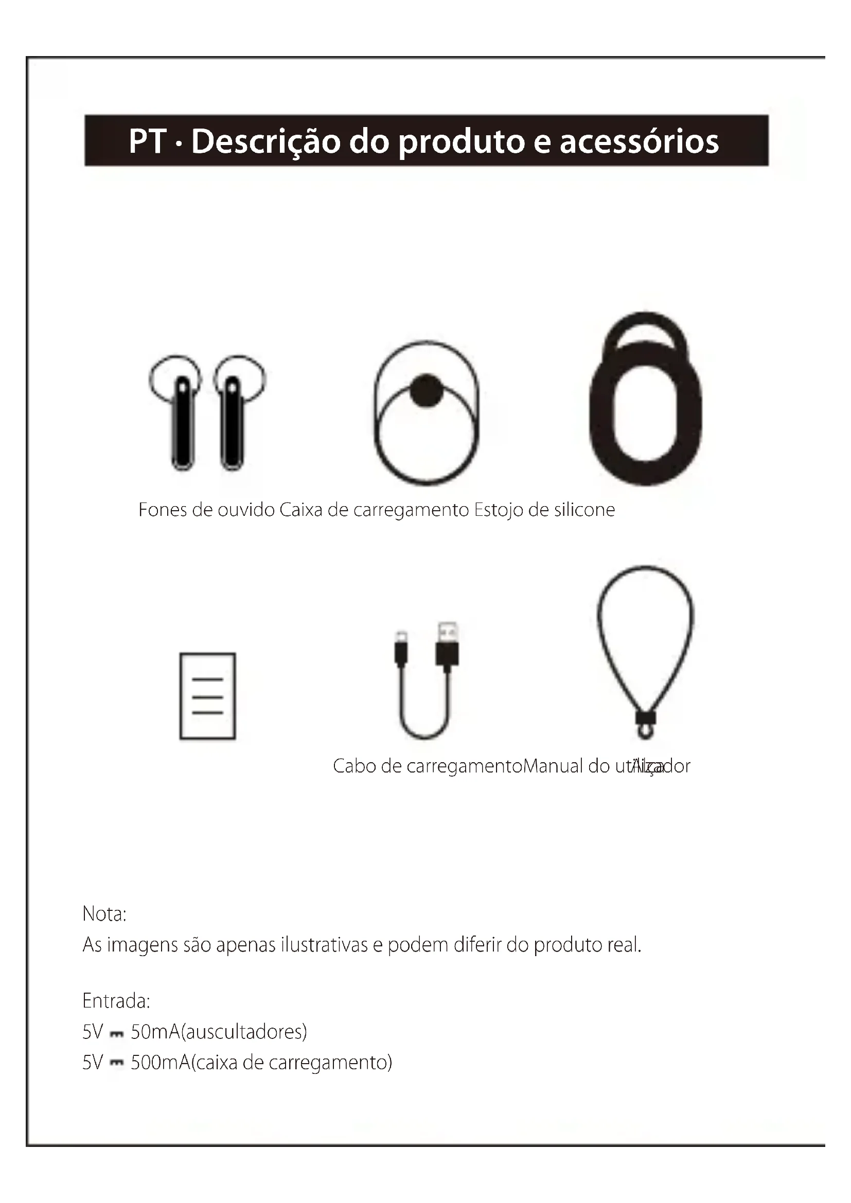 Carregar a caixa de carregamento Aviso: As baterias recarregáveis que alimentam este produto têm de ser devidamente eliminadas para reciclagem. Não elimine as baterias no fogo para evitar uma explosão. Se não for usado por longo período, carregue o produto com bateria de lítio a cada três meses.■ Ligar/desligar