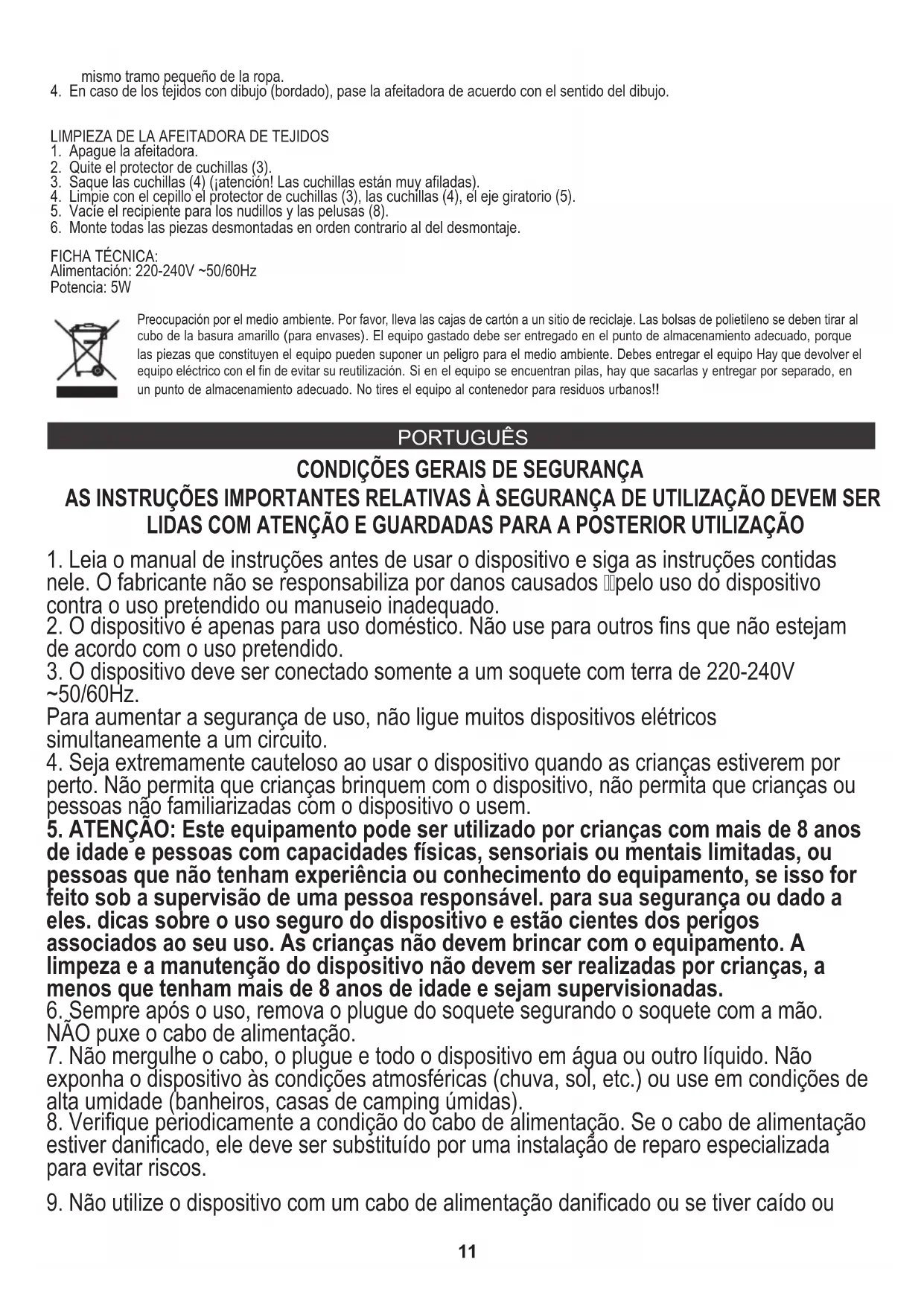 5. ATENÇÃO: Este equipamento pode ser utilizado por crianças com mais de 8 anos