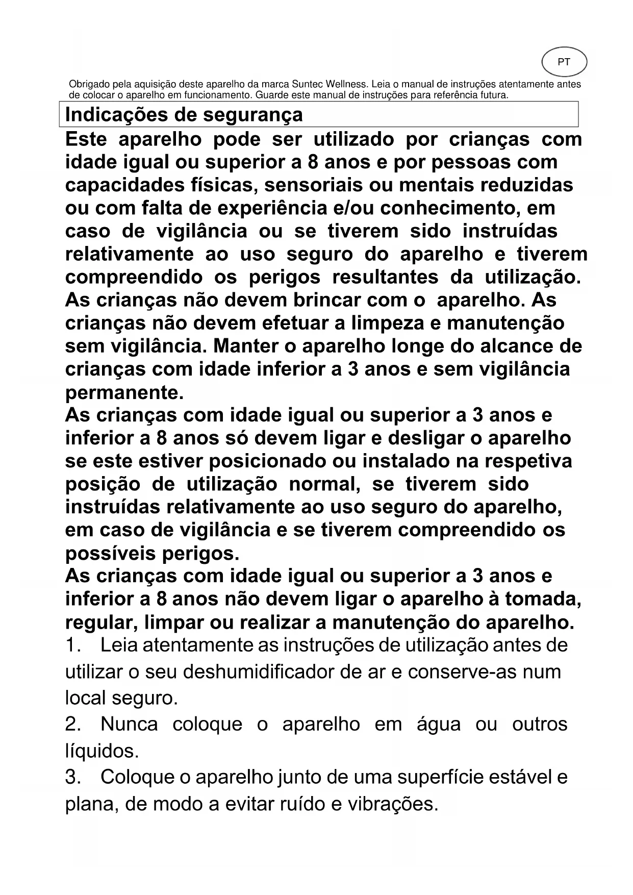 1. Leia atentamente as instruções de utilização antes de