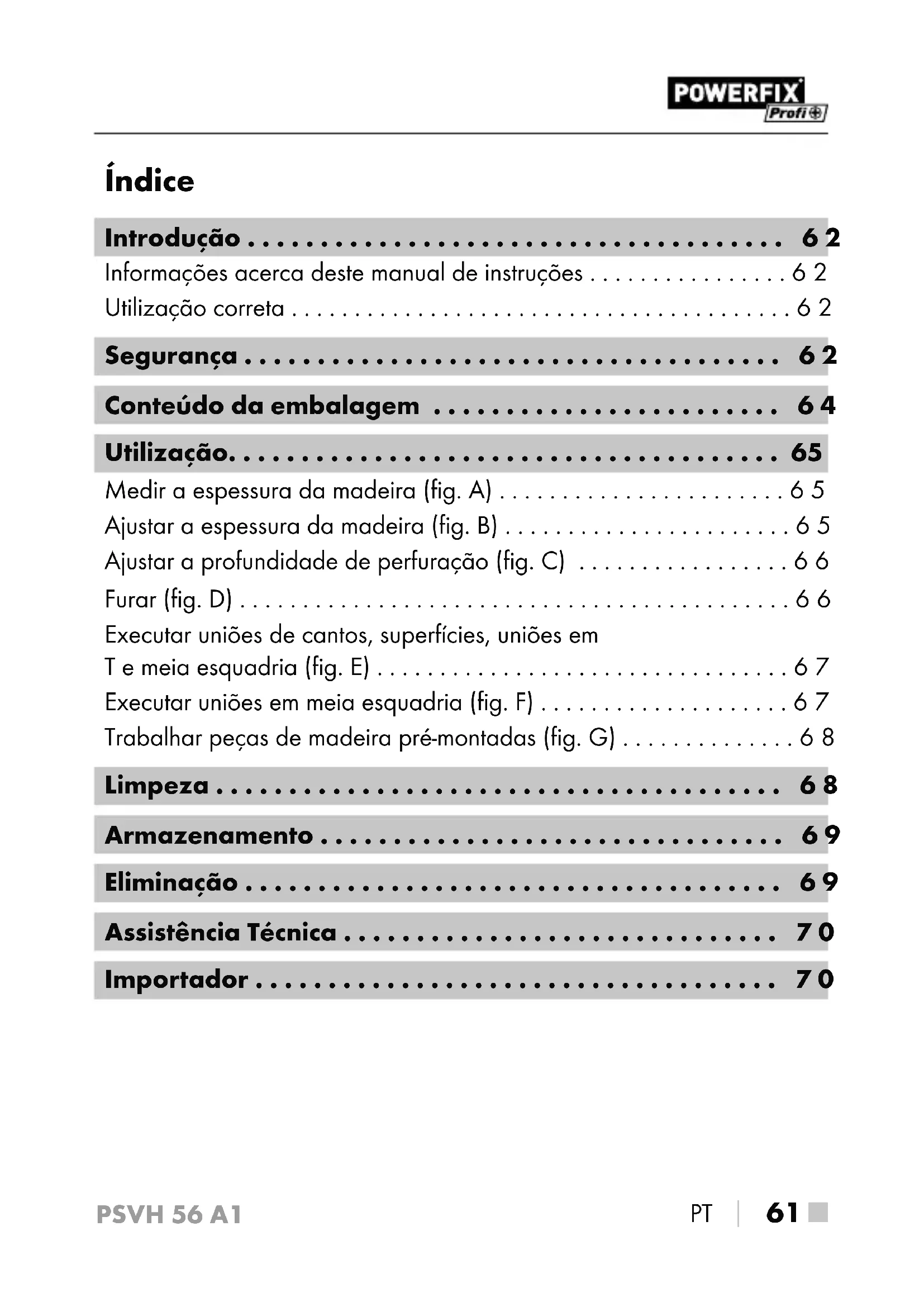 Encontre gratuitamente o manual do aparelho PSVH 56 A1 POWERFIX em formato PDF.