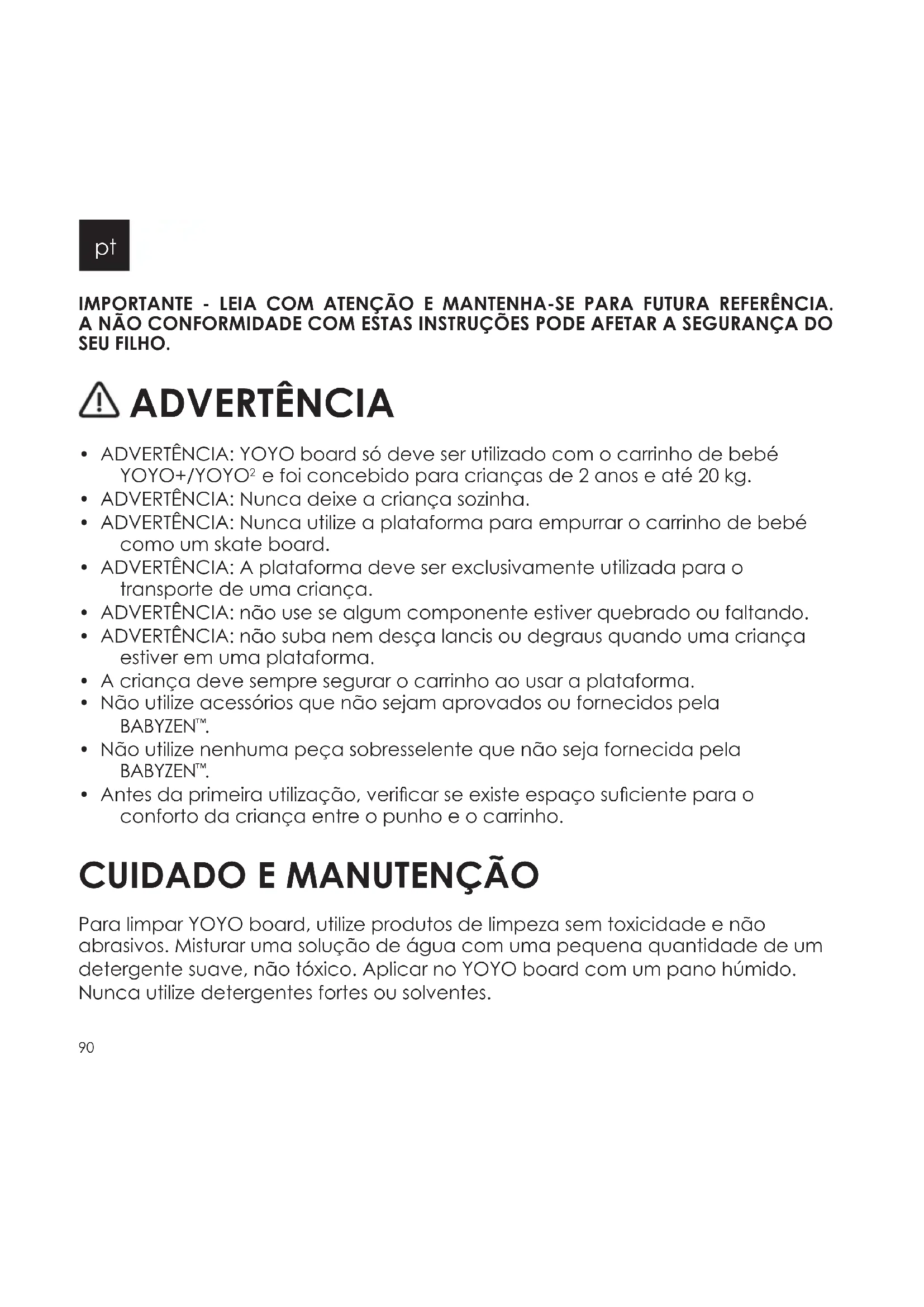 - ADVERTÊNCIA: YOYO board só deve ser utilizado com o carrinho de bebé YOYO+/YOYO