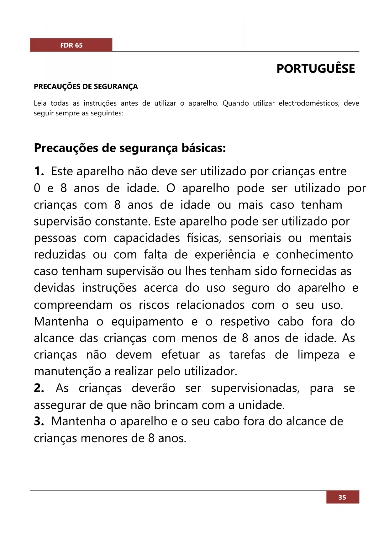 crianças menores de 8 anos.FDR 65
