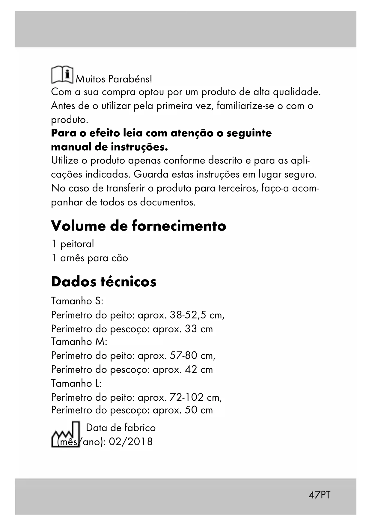 152 PT Conservação, armazenamento Por razões de funcionalidade, o artigo deve ser limpo meca- nicamente com regularidade. IMPORTANTE! Lave apenas com água, nunca com produtos de limpeza agressivos. Em seguida, seque com um pano de limpeza. Armazene o artigo sempre seco e limpo num local ameno e não o exponha a luz solar direta. Durante ou após uma doença do seu animal, o artigo deve ser desinfetado. Deve consultar um veterinário da sua confiança e pedir-lhe conselho sobre os produtos de higiene e desinfeção mais adequados. Instruções para a eliminação Elimine o artigo e os materiais da embalagem de acordo com as normas locais atuais. Os materiais da embalagem, como por ex. o saco de plástico, não devem estar ao al- cance das crianças. Guarde o material da embalagem fora do alcance das crianças.53PT Indicações sobre a garantia e o processamento de serviço O produto foi produzido com os maiores cuidados e sob constante controlo. Com este produto obtém uma garantia de três anos, válida a partir da data de aquisição. Guarde o talão de compra. A garantia apenas é válida para defeitos de material e fabri- co e é anulada em caso de utilização errada ou inadequa- da do produto. Os seus direitos legais, especialmente os direitos de garantia do consumidor, não são limitados pela presente garantia. Em caso de eventuais reclamações, queira contactar o serviço de atendimento abaixo mencionada ou entre em contacto connosco via e-mail. Os nossos empregados do serviço de atendimento irão combinar consigo o mais rapi- damente possível o procedimento subsequente. Atendê-lo- emos pessoalmente em cada caso. Segundo a DL 67/2003, com a troca do aparelho dá-se início a um novo prazo de garantia. Depois de expirada a garantia, eventuais reparações impli- cam o pagamento de custos. IAN: 296828 Assistência Portugal Tel.: 70778 0005 (0,12 EUR/Min.) E-Mail: deltasport@lidl.pt5455IAN 296828