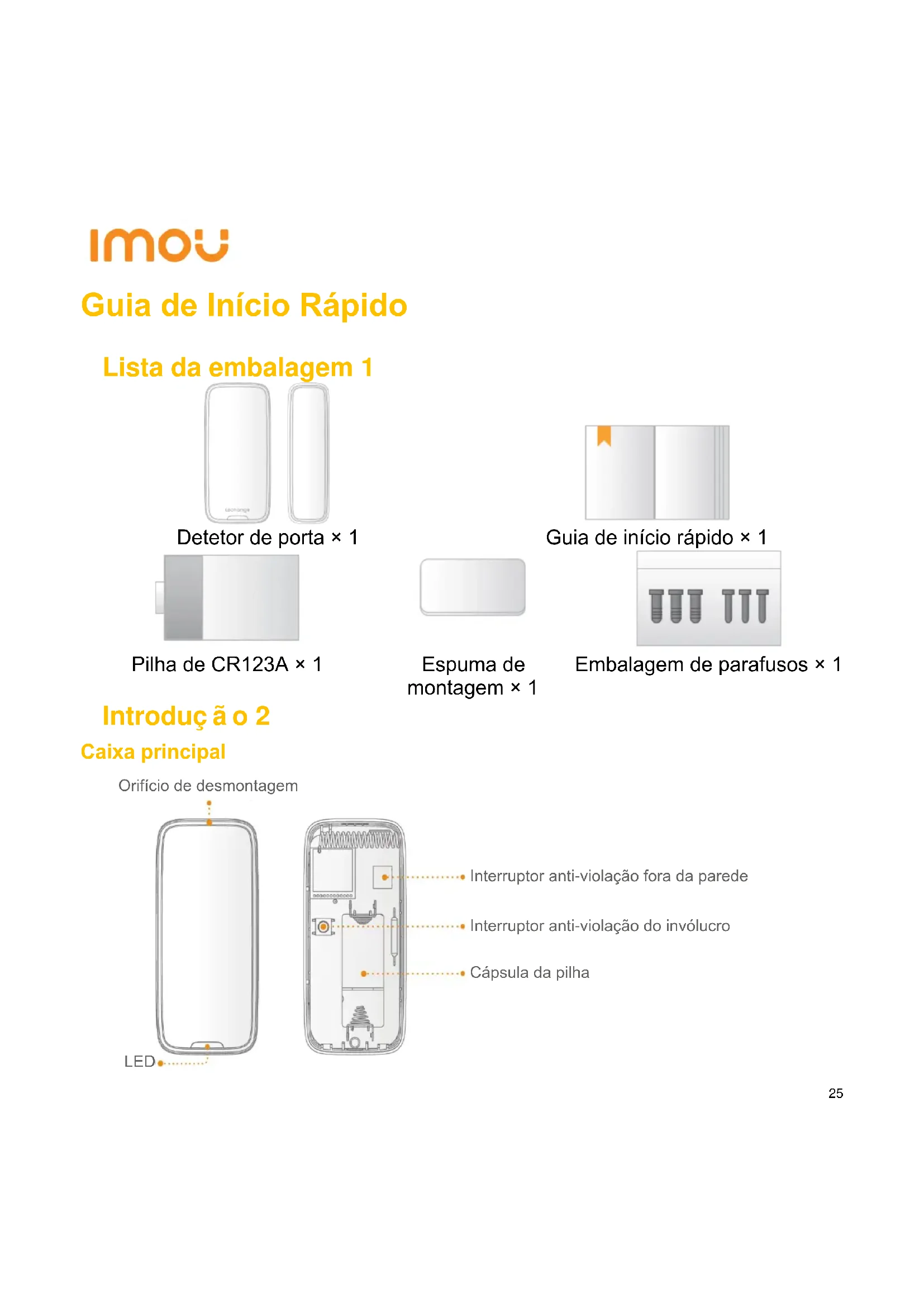 Detetor de porta × 1 Guia de início rápido × 1