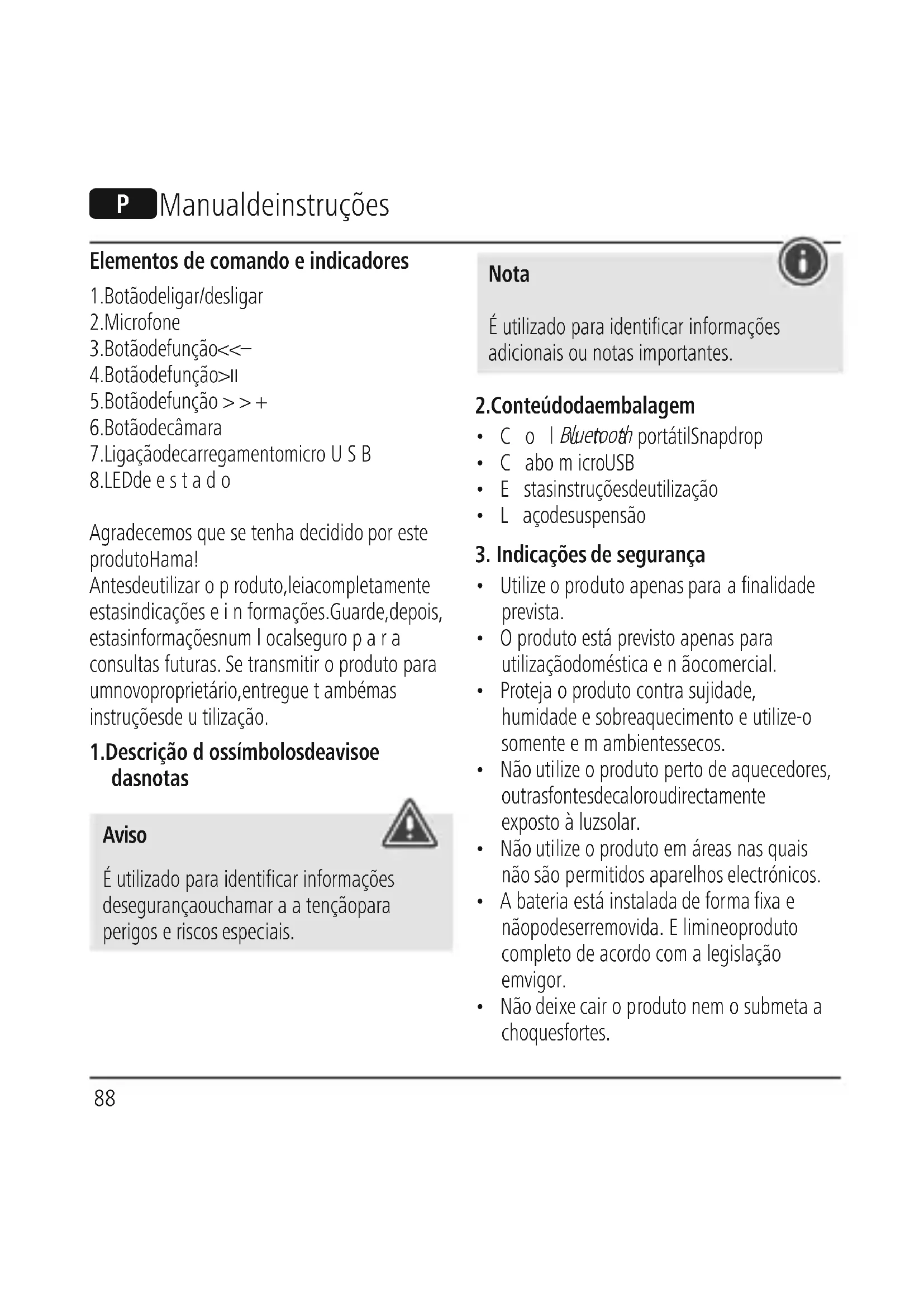 Agradecemosque se tenha deci dido poreste produto Hama! Antes de utilizaroproduto, leia completamente estas indicaçõeseinformações. Guarde, depois, estas informações numlocal seguropara consultas futuras. Se transmitir oproduto para um novo proprietário, entreguetambémas instruções deutilização.