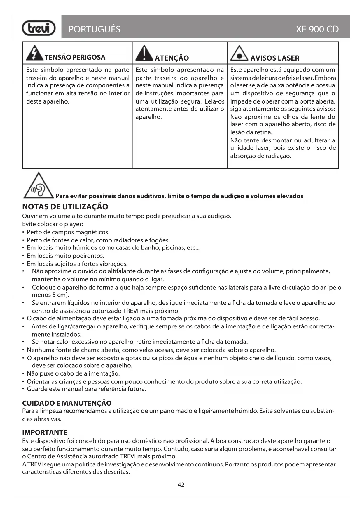 Encontre gratuitamente o manual do aparelho XF 900 CD Trevi em formato PDF.