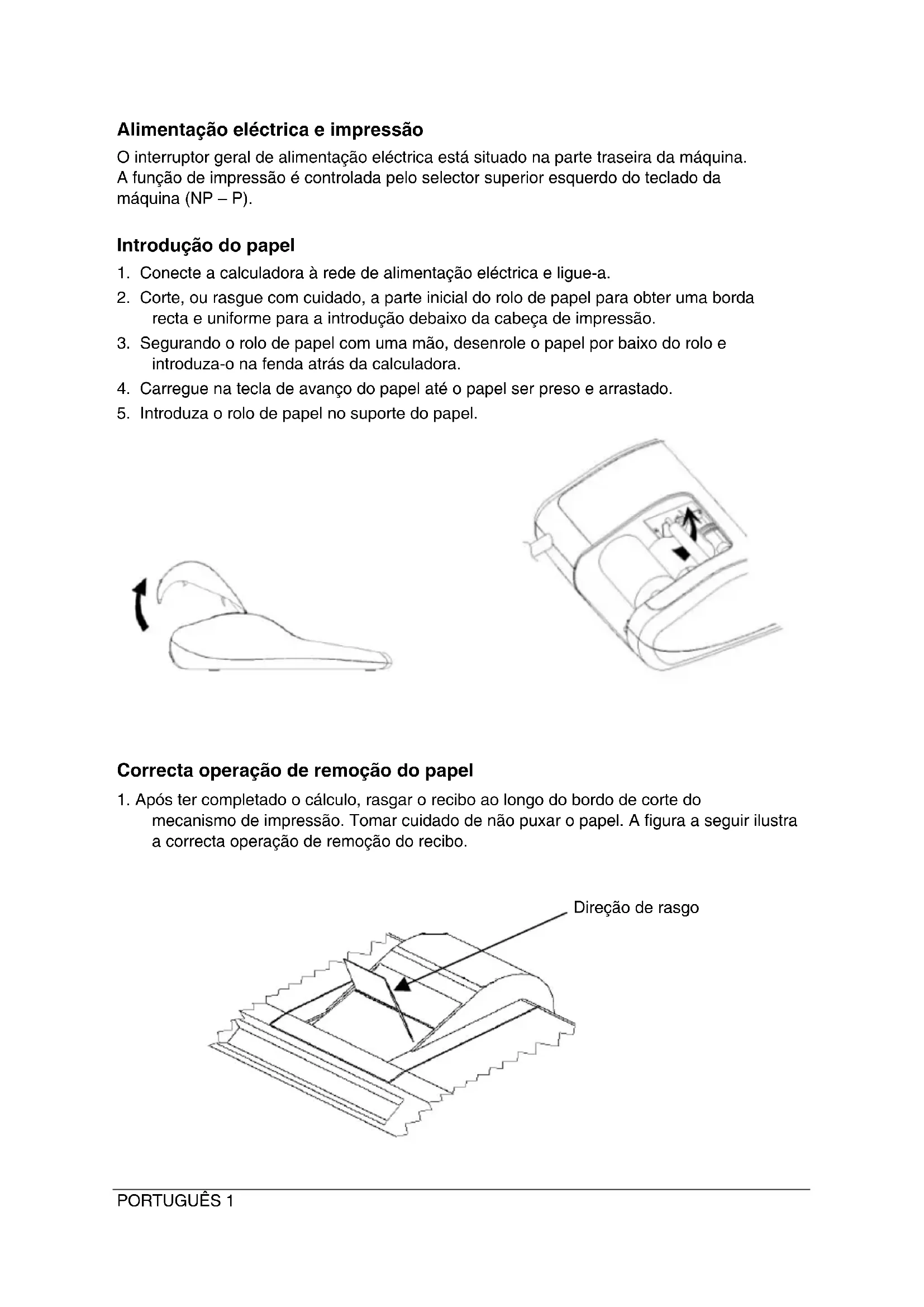1. Após ter completado o cálculo, rasgar o recibo ao longo do bordo de corte do