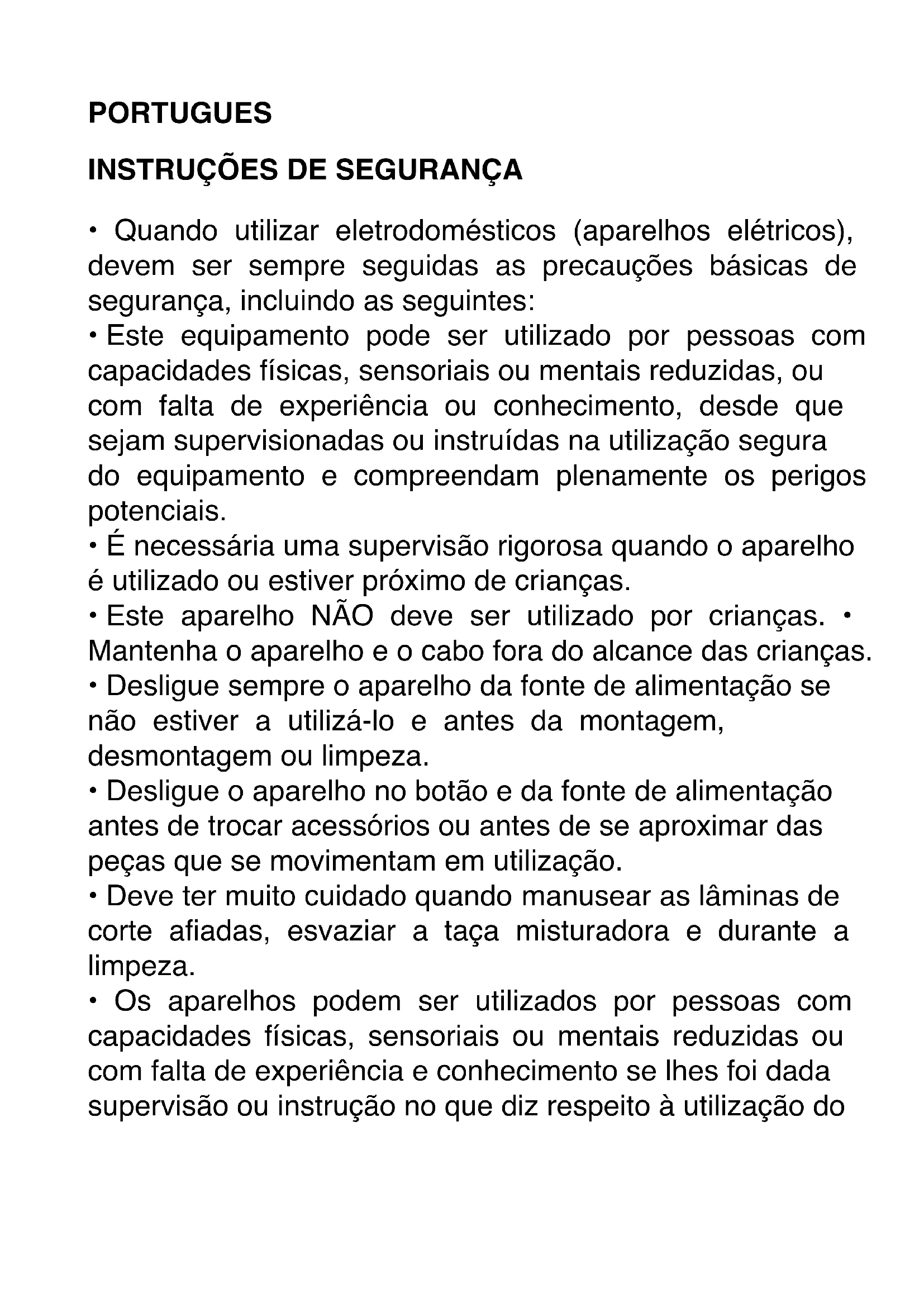 - Este equipamento pode ser utilizado por pessoas com capacidades físicas, sensoriais ou mentais reduzidas, ou com falta de experiência ou conhecimento, desde que sejam supervisionadas ou instruídas na utilização segura do equipamento e compreendam plenamente os perigos potenciais.