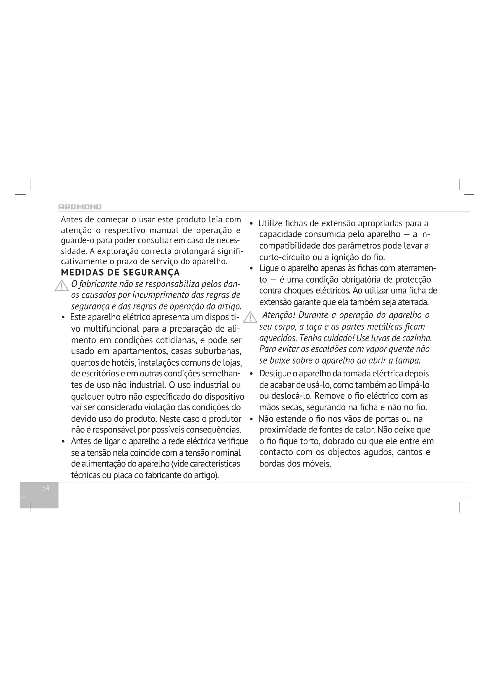- Este aparelho elétrico apresenta um dispositi- vo multifuncional para a preparação de ali- mento em condições cotidianas, e pode ser usado em apartamentos, casas suburbanas, quartos de hotéis, instalações comuns de lojas, de escritórios e em outras condições semelhan- tes de uso não industrial. O uso industrial ou qualquer outro não especicado do dispositivo vai ser considerado violação das condições do devido uso do produto. Neste caso o produtor não é responsável por possíveis consequências.