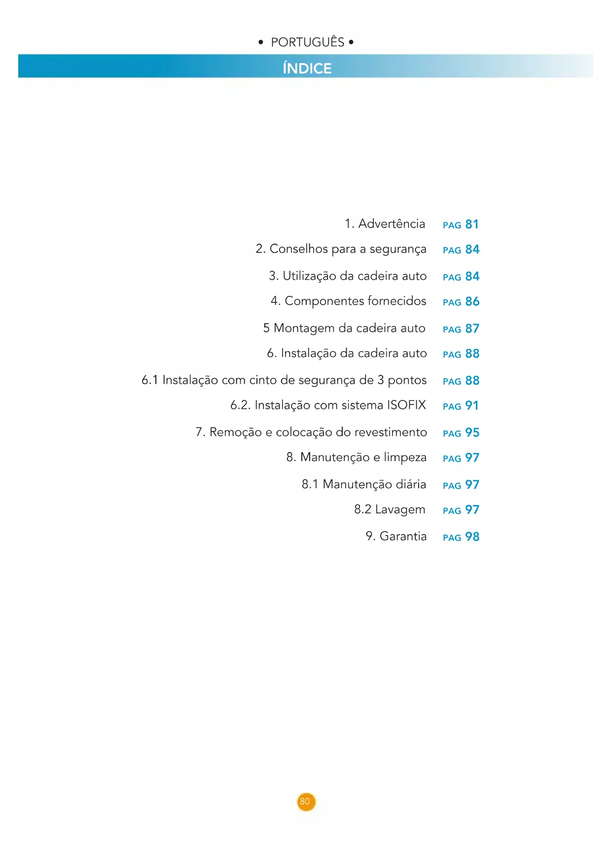 - Vericar os dispositivos de regulação e bloqueio em intervalos regulares e certicar-se que a cadeira auto está regulada corretamente para a idade da criança. Em caso de acidente a cadeira auto deverá ser substituída, pois poderão existir micro ruturas não visíveis.