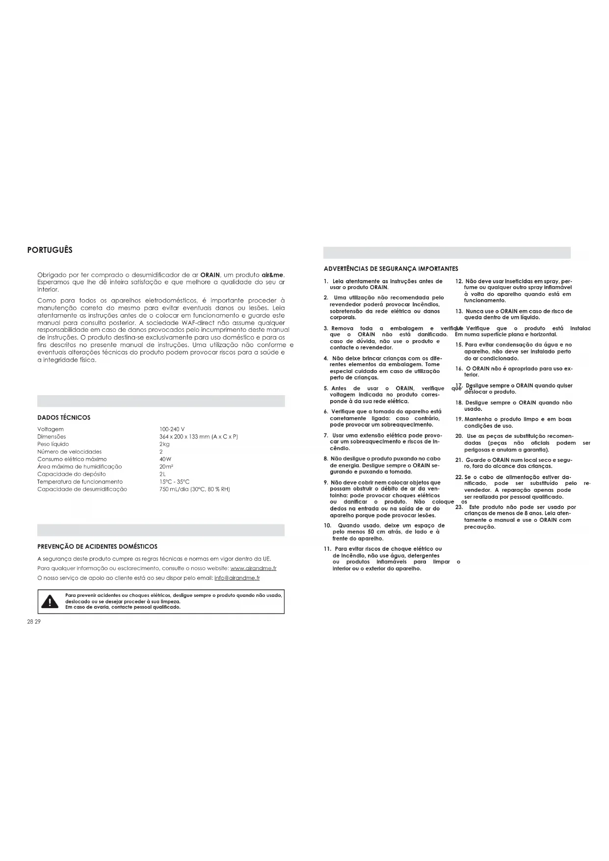 MANUAL DE UTILIZADOR ORAIN Air&Me