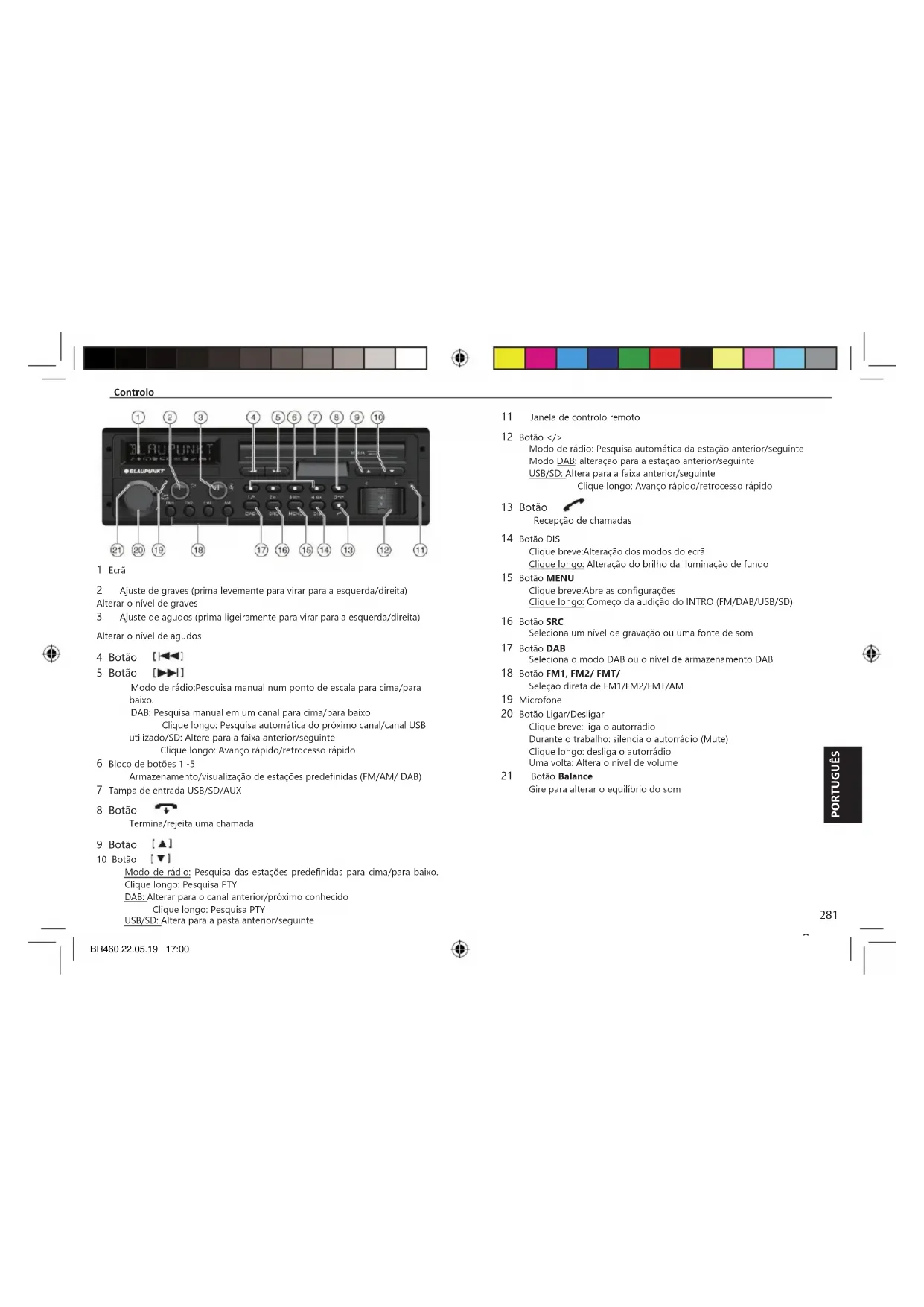Configuração do ecrã PORTUGUÊSBR460 22.05.19 17:00 AUTORADIO