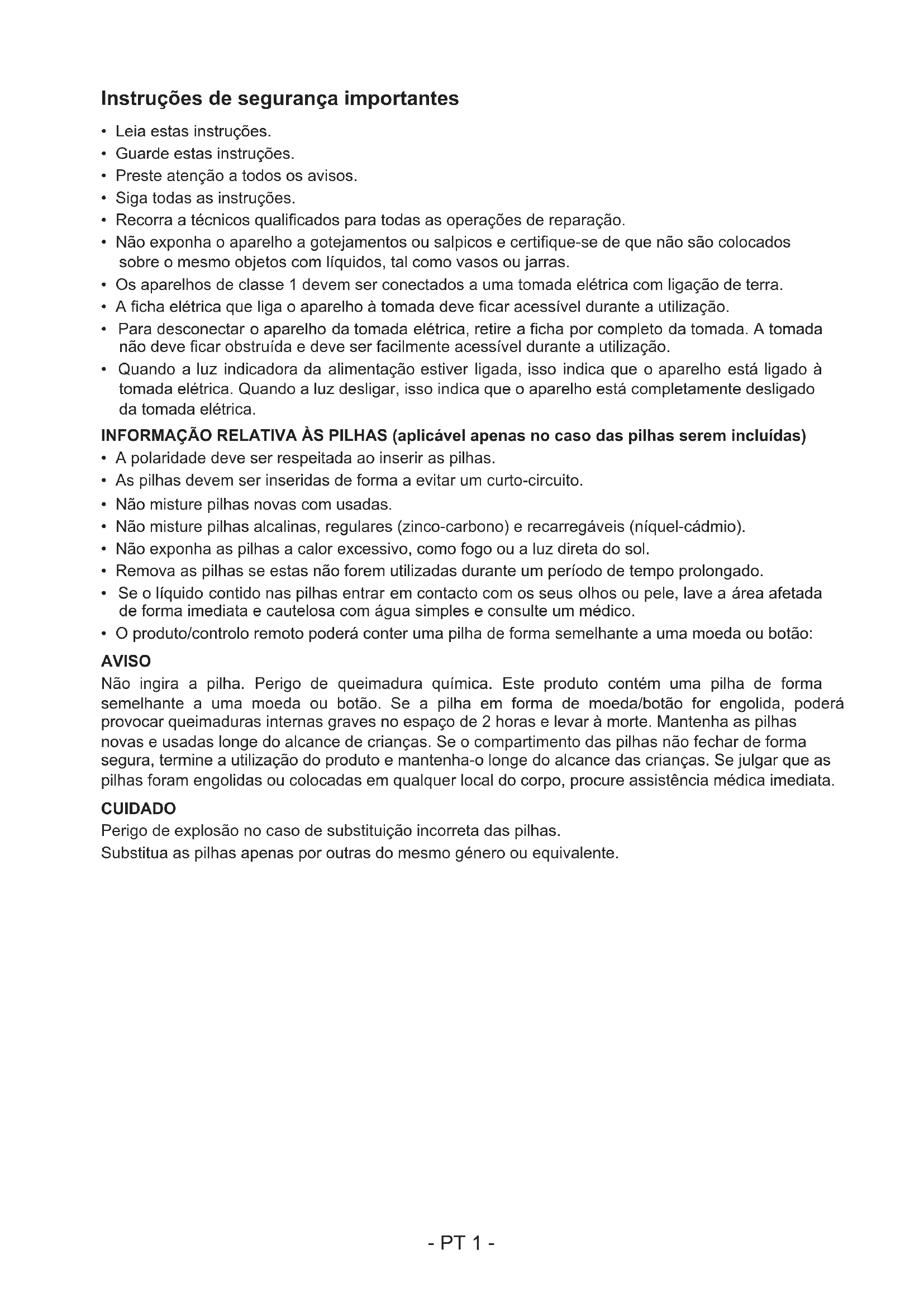 LEIA TODO O MANUAL DE UTILIZADOR ANTES DE TRABALHAR COM ESTA UNIDADE E GUARDE O FOLHETO PARA REFERÊNCIA FUTURA. PT- PT 1 - Instruções de segurança importantes