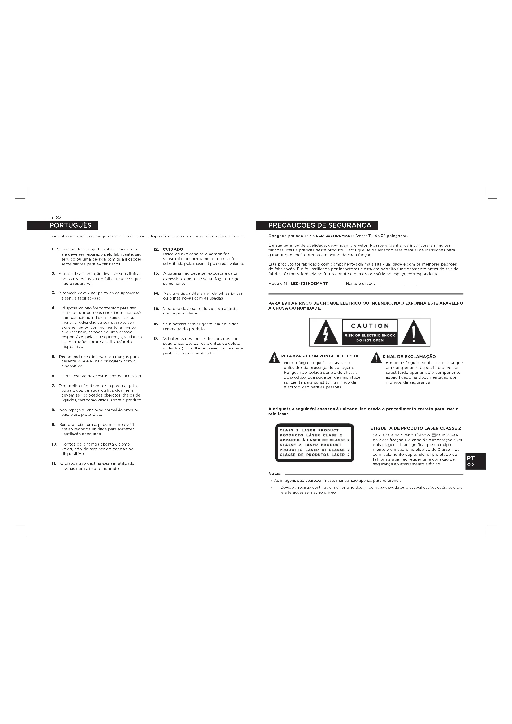 - Devido à revisão contínua e melhoria no design de nossos produtos e especificações estão sujeitas a alterações sem aviso prévio.85 pt 84 PRECAUÇÕES DE SEGURANÇAPRECAUÇÕES DE SEGURANÇA