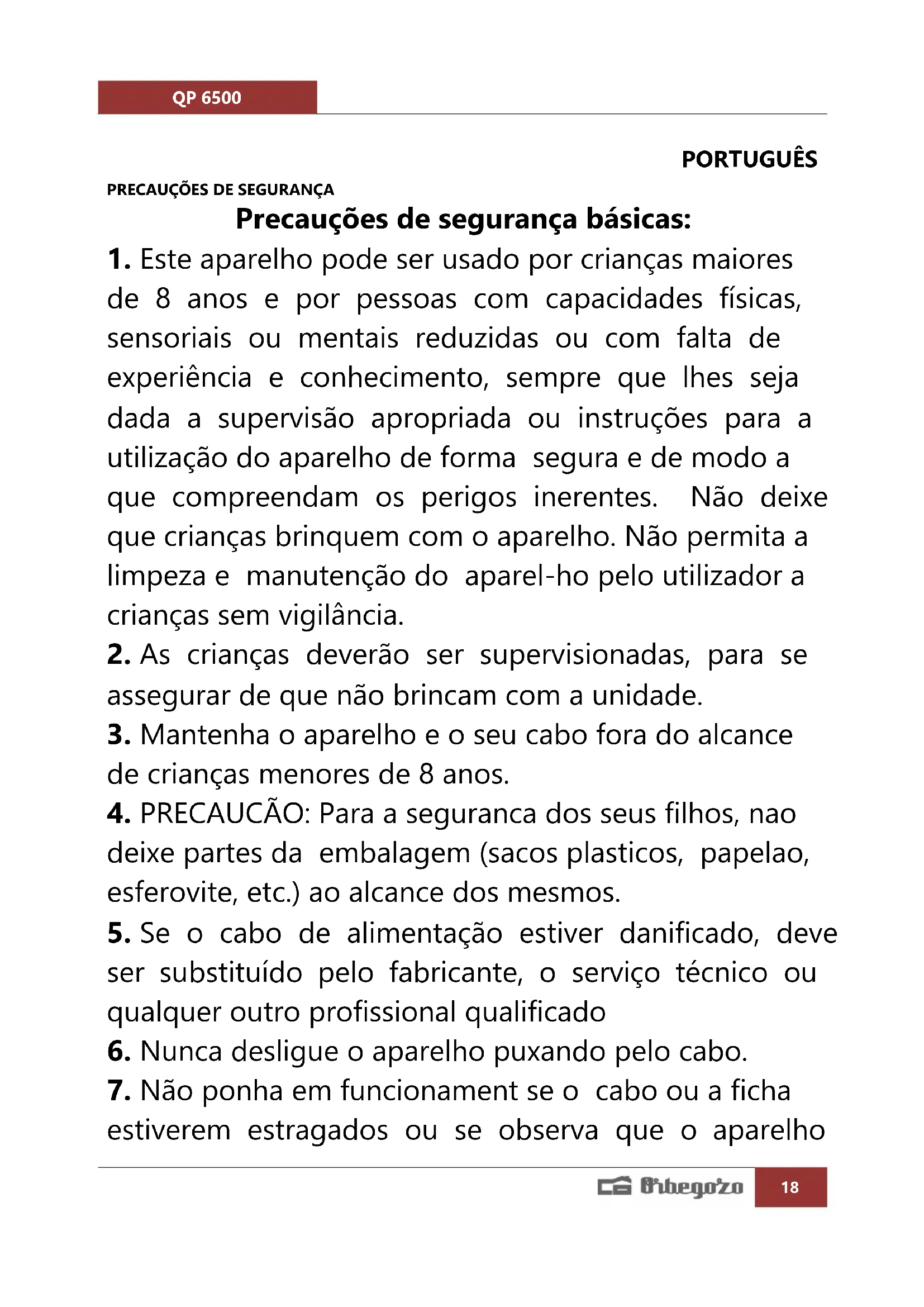 Encontre gratuitamente o manual do aparelho QP 6500 Orbegozo em formato PDF.