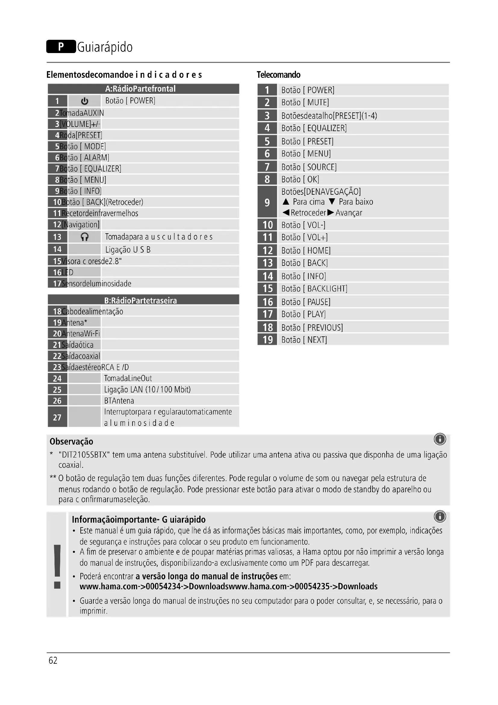 Encontre gratuitamente o manual do aparelho DIT2105SBTX HAMA em formato PDF.