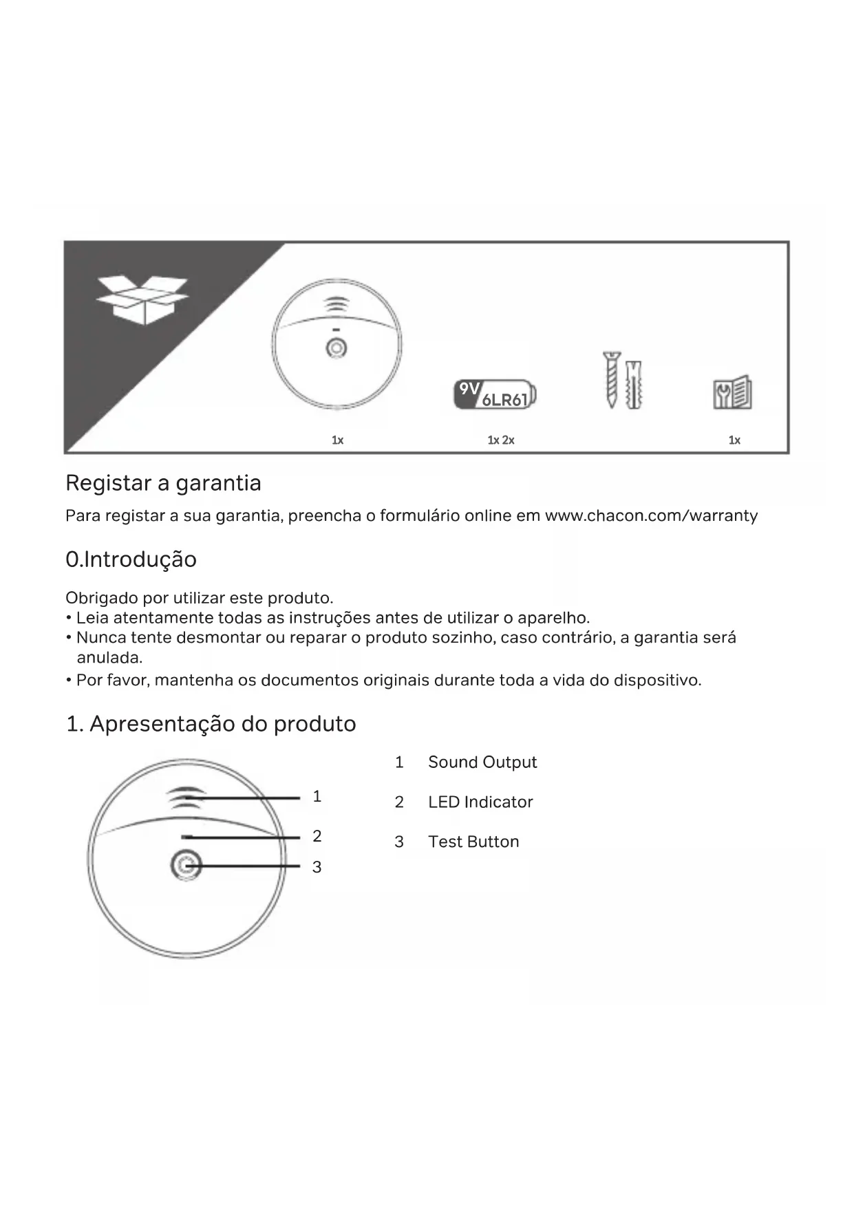 Para registar a sua garantia, preencha o formulário online em www.chacon.com/warranty Obrigado por utilizar este produto.