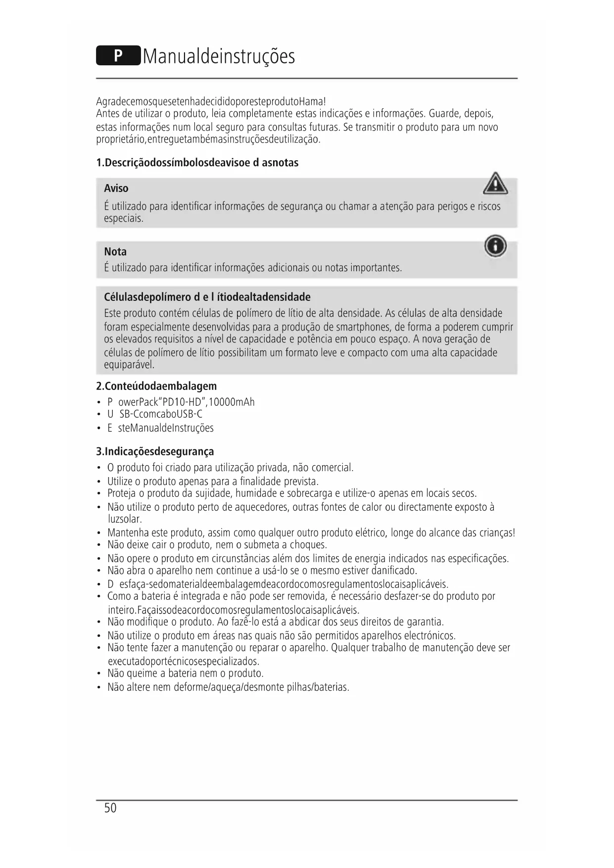 PD10HD 00187261 - Bateria portátil HAMA - Manual de utilização gratuito