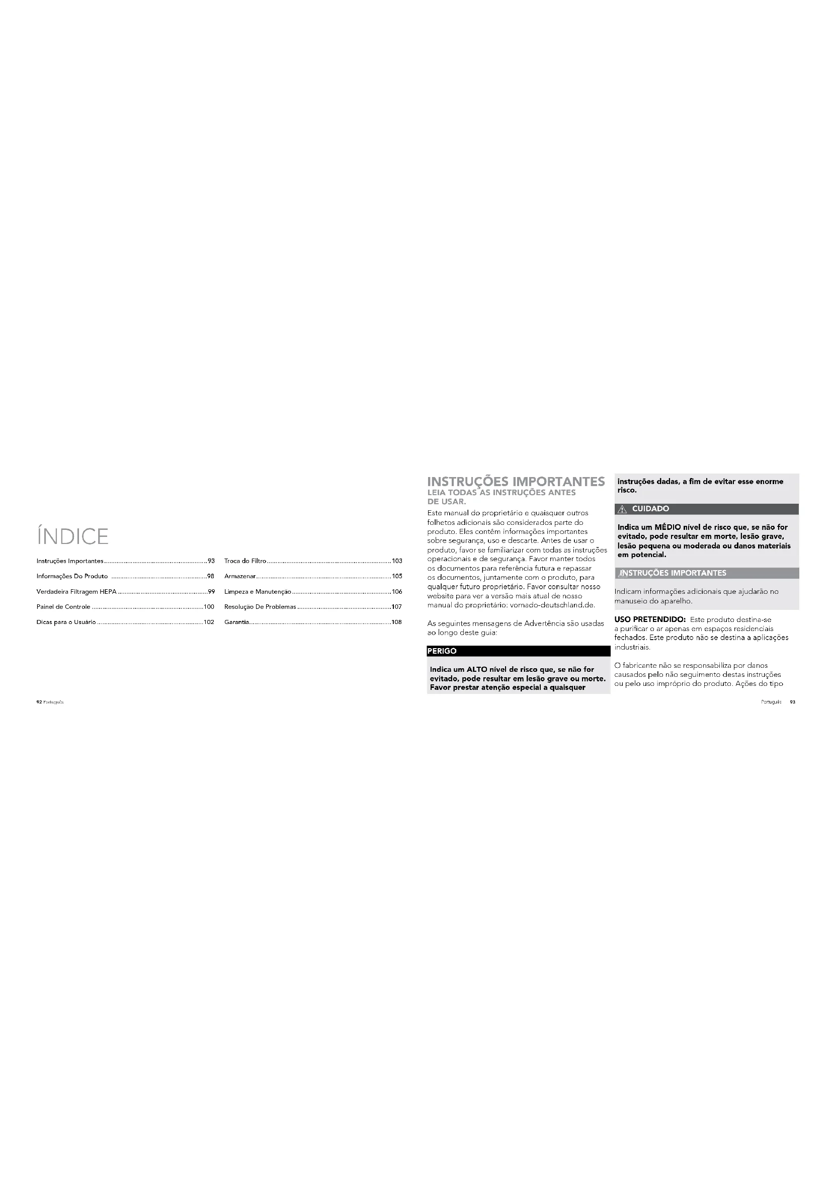 GUARDE ESTAS INSTRUÇÕES99